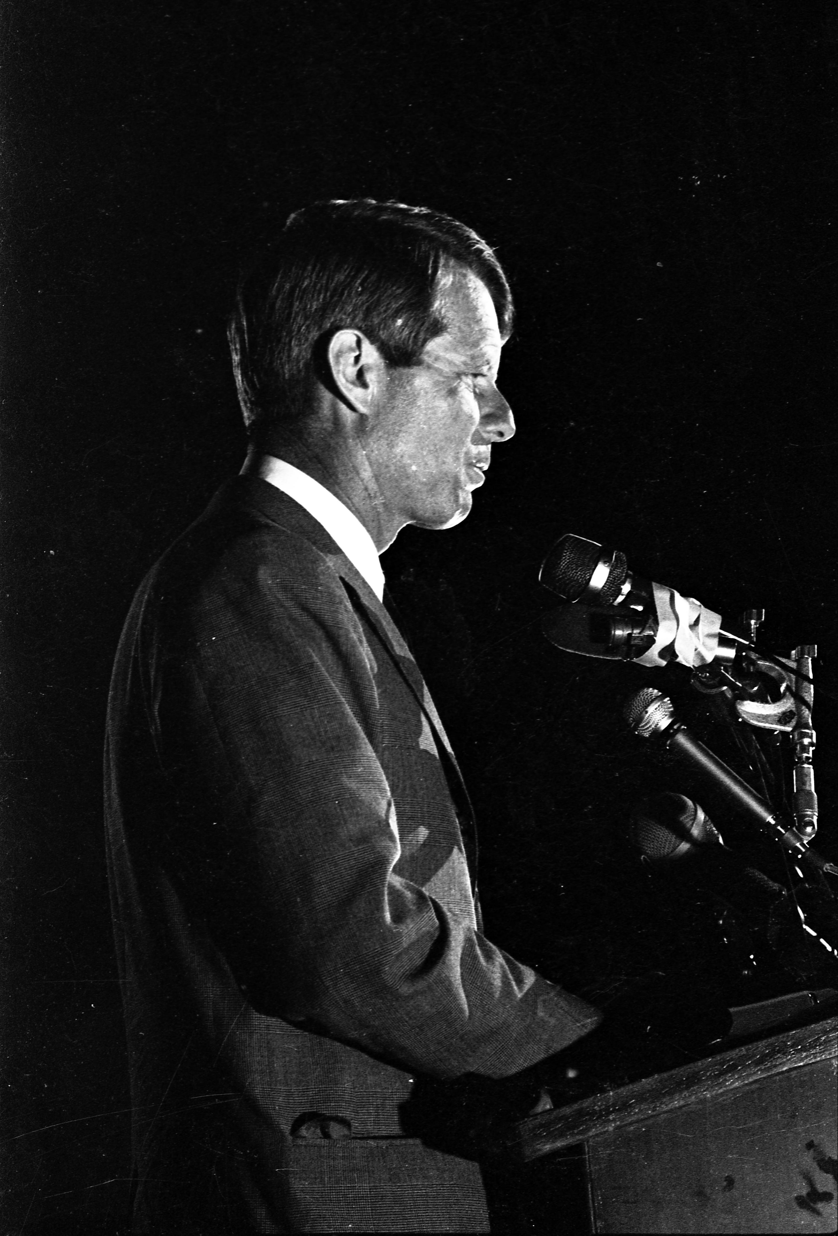 Senator Robert Kennedy of Massachusetts spoke at Roberts Municipal Stadium at 2600 Division St., as he campaigned for the Democratic nomination for U.S. president. This facility was razed in 2013.