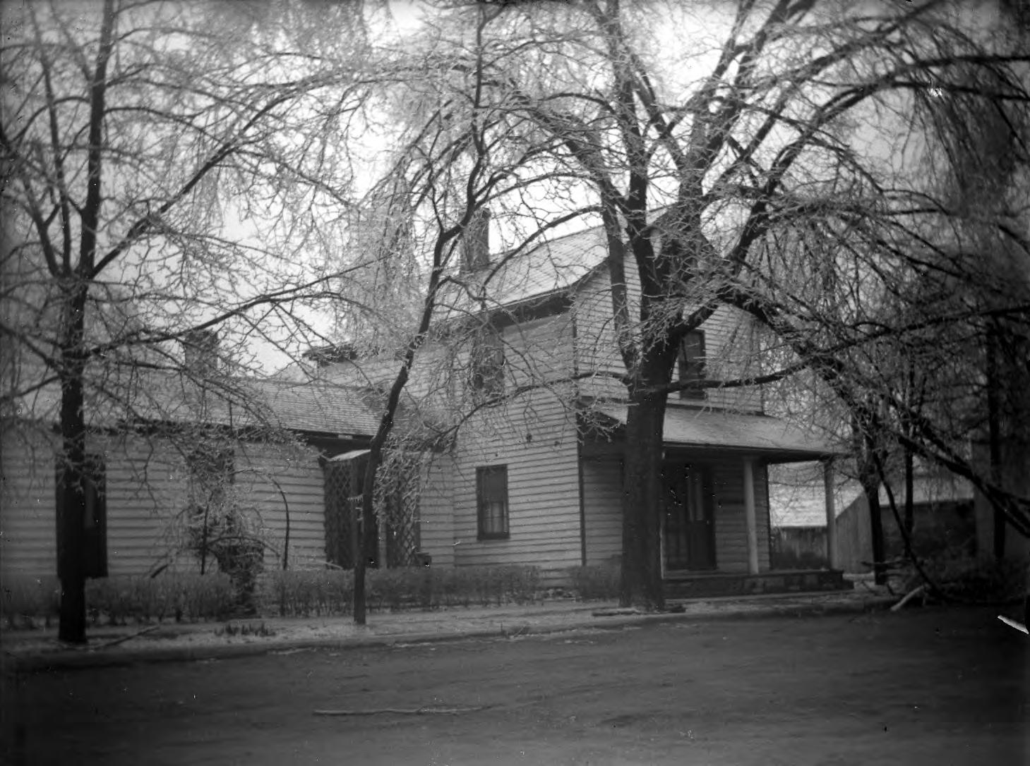 Homer Fauntleroy's home at 411 West St."""In 1827, Robert Henry Fauntleroy moved from Virginia to New Harmony, Indiana. There he married Jane Dale Owen, one of the five children of social reformer Robert Owen, who had purchased the town in 1825. As an engineer, Fauntleroy was awarded patents for two inventions. He was an Assistant in the U. S. Coast Survey, reporting directly to the Superintendent, at the time of his death. The name Fauntleroy is well known in modern New Harmony, and The Old Fauntleroy Home is visited by hundreds tourists each year. The home has been associated with several members of the Fauntleroy family, beginning with Robert Henry Fauntleroy, who bought the home from Oliver Evans, Jr., in 1840." (https://faculty.evansville.edu/ck6/bstud/rhfauntleroy.html) Homer Fauntleroy (1866-1952) was a descendent of this family and a photographer in his own right.