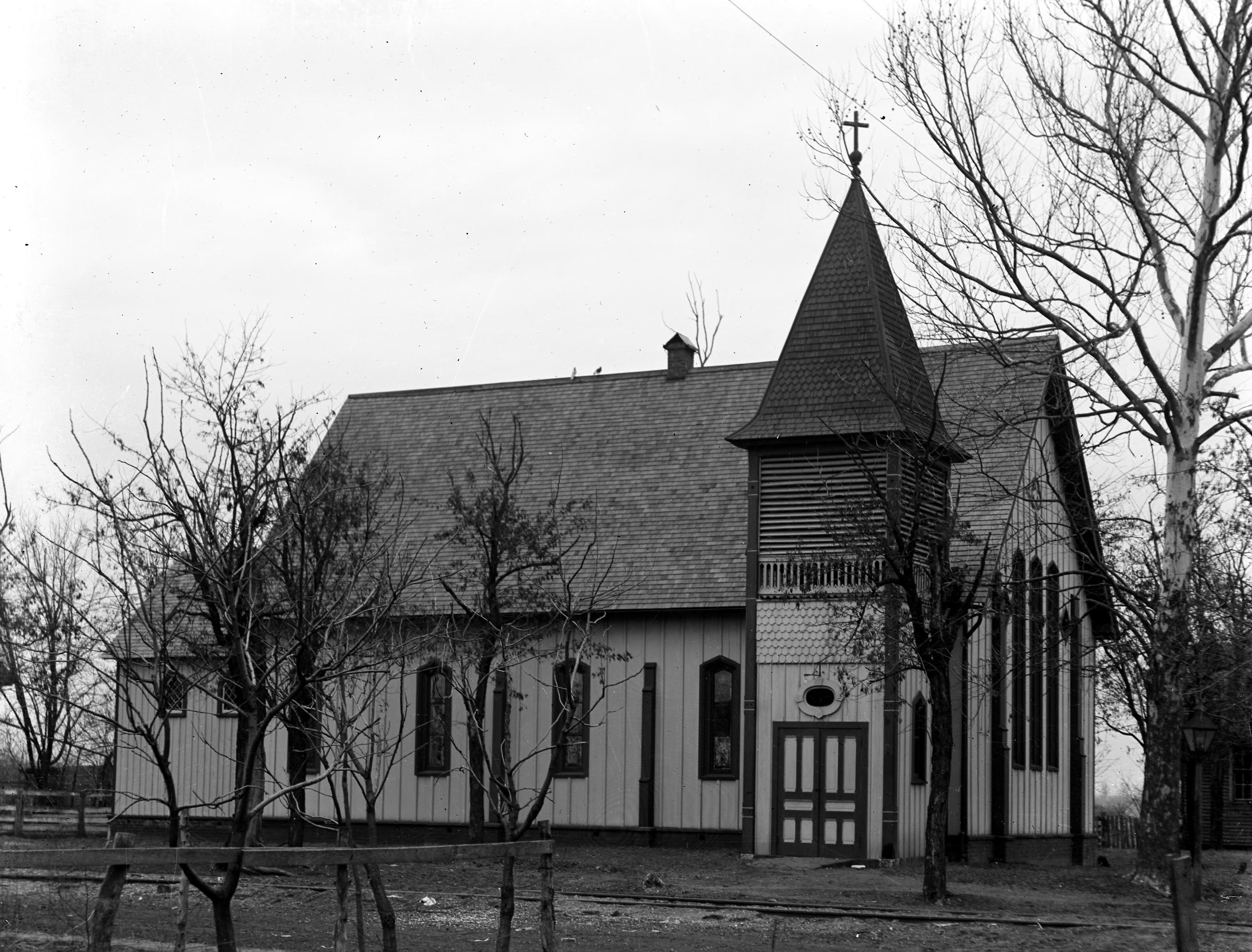 St. Stephen's Episcopal Church at 318 Main St.This church was consecrated June 14, 1855, but apparently before that the congregation used a portion of the old Rappite church. The church was rebuilt in 1911/1912, with a consecration on February 26, 1912. The building in this photograph is the pre-1912 building. Today's church does not resemble this at all.