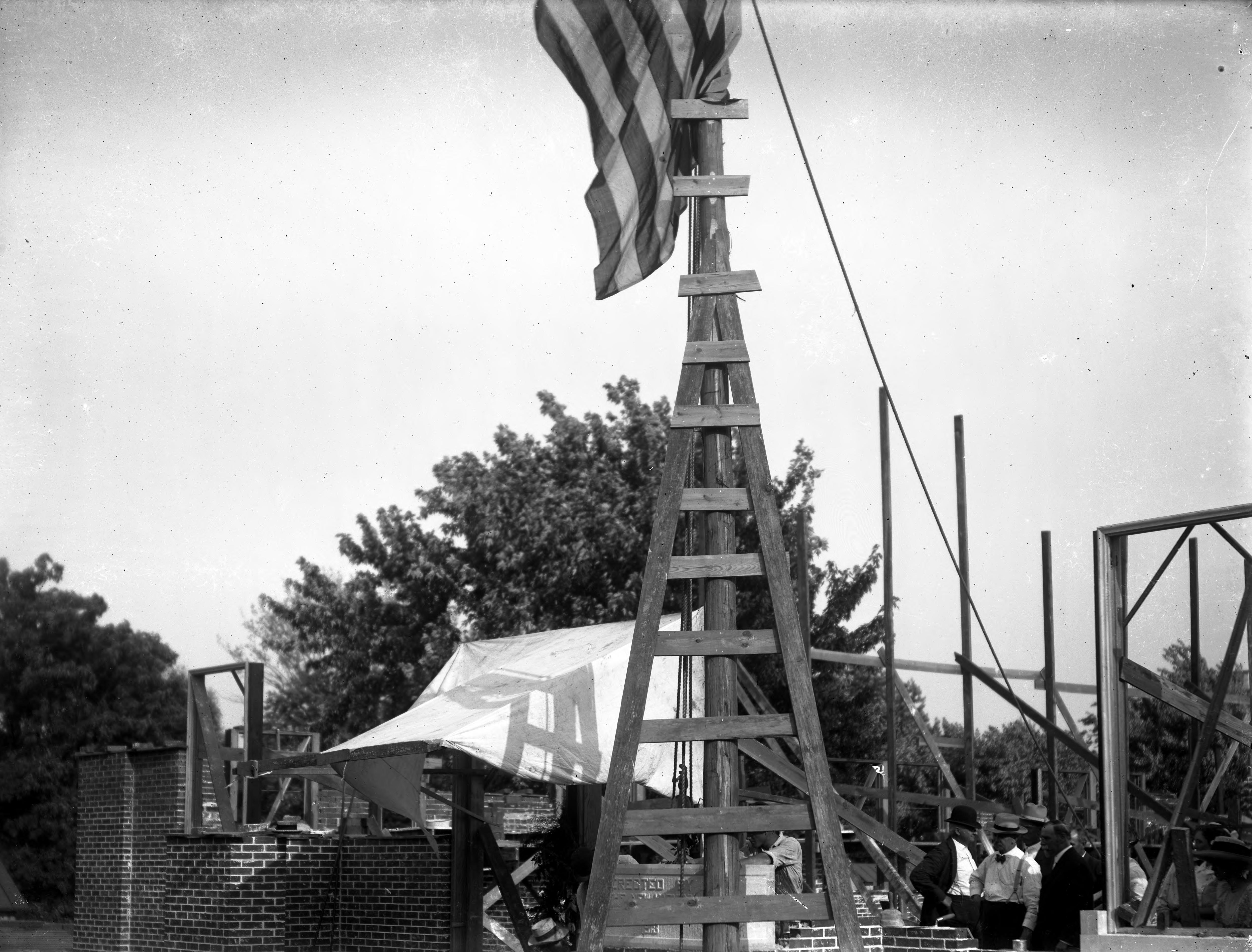 Construction of Murphy Auditorium at 419 Tavern St.""In 1911, the Working Men�s Institute purchased a lot adjacent to their museum and library with the purpose of building an auditorium. This project was funded through the Dr. Edward Murphy fund. Today, the University of Southern Indiana�s Murphy Auditorium offers excellent space for conferences, concerts, lectures, and is home to the University�s New Harmony Theatre Summer Season." (https://visitnewharmony.com/celebrate/murphy-auditorium/).