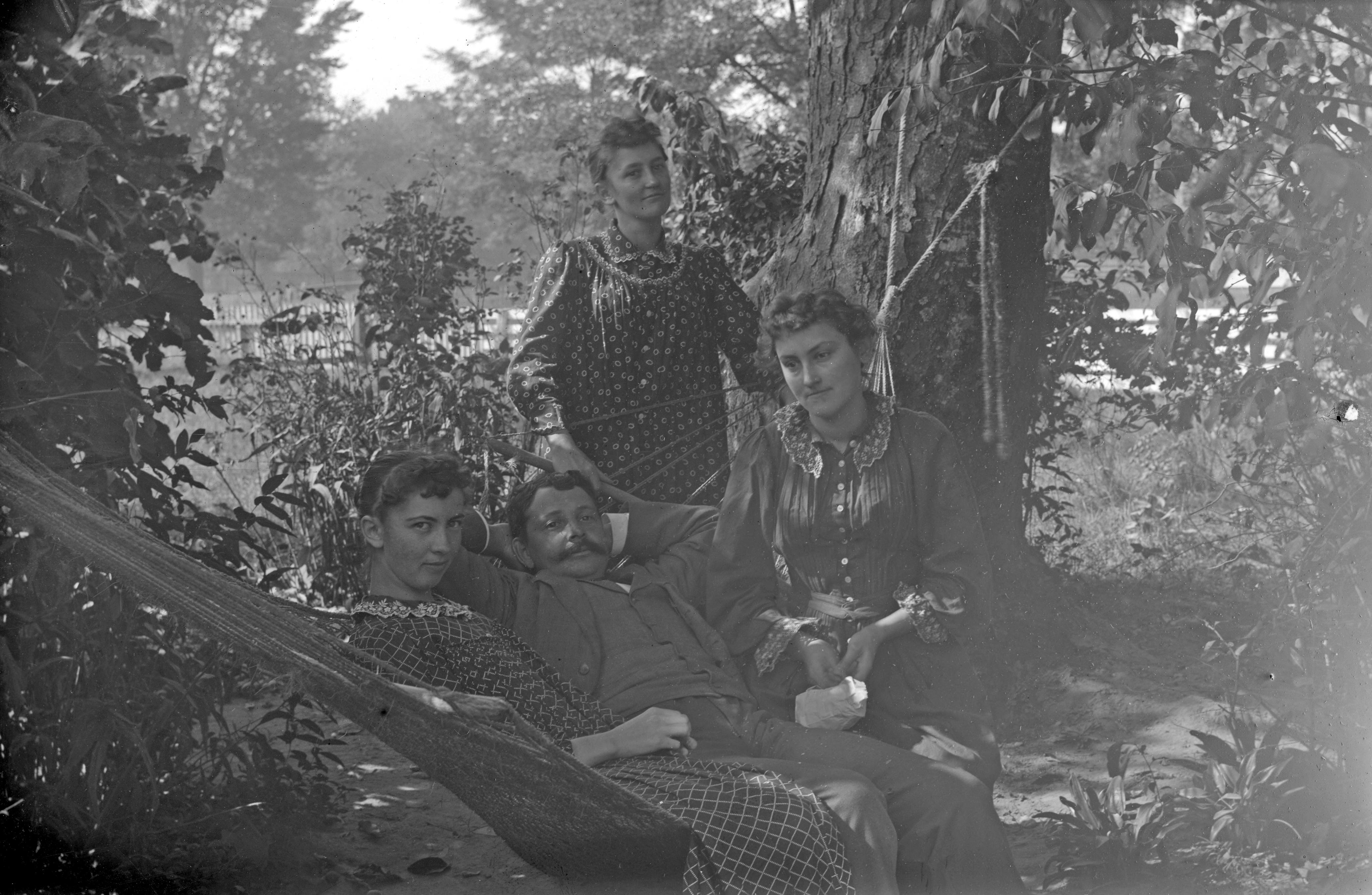 Annie Miller Wilson, Larry E. Bartee or Tom Wilson (2 men's names given--which is correct is unknown), Kate Miller (back row), and Maud Miller Fauntleroy. Annie and Maud are known to be sisters, and Kate, judging from her appearance, probably is, also.