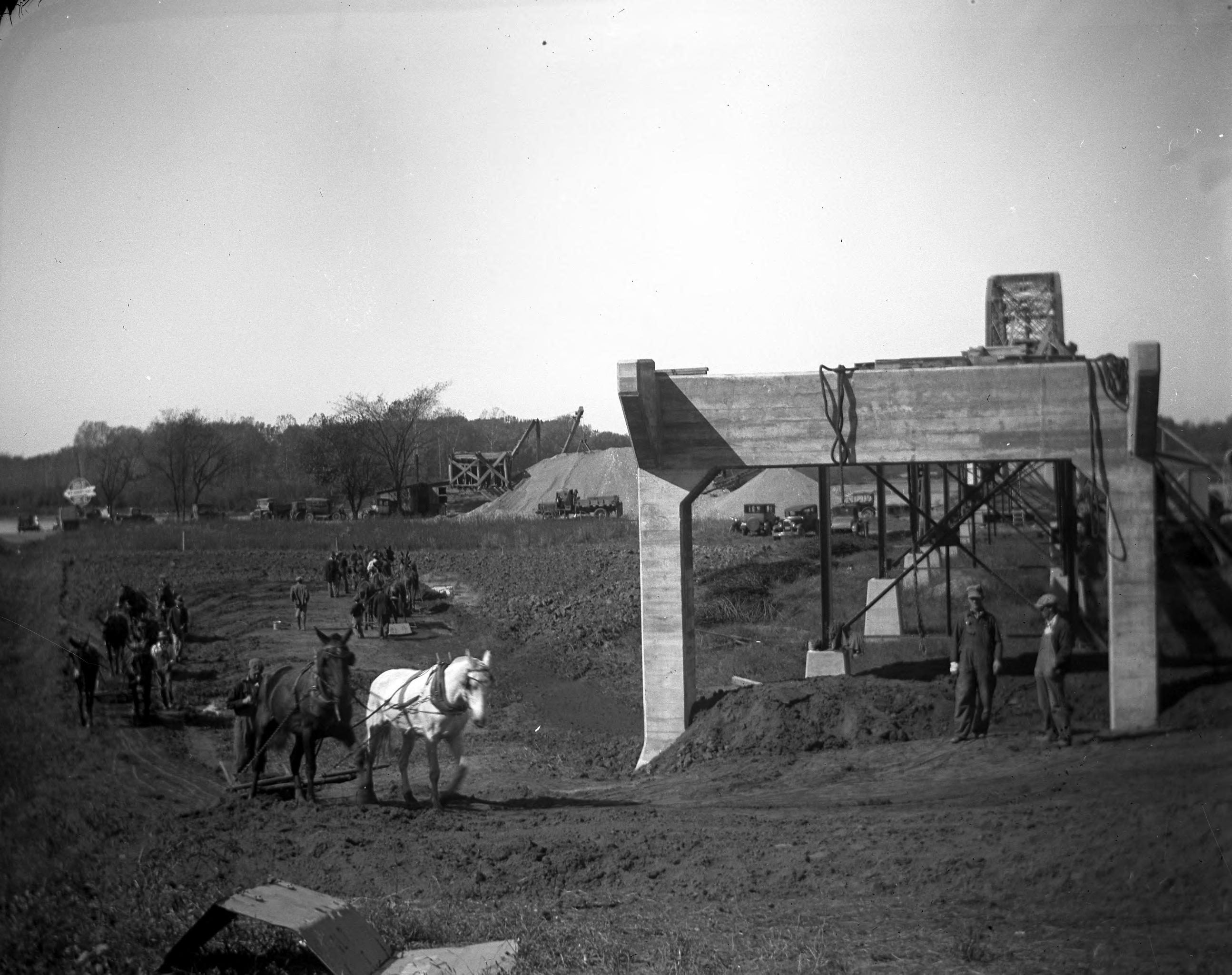 Harmony Way Bridge construction, grading at the Indiana side. Until the Harmony Way bridge between Posey County, IN and White County, IL was built in 1930, a ferry would have been the only means of access. This bridge is now closed due to being structurally deficient, and lack of funding to effect repairs.
