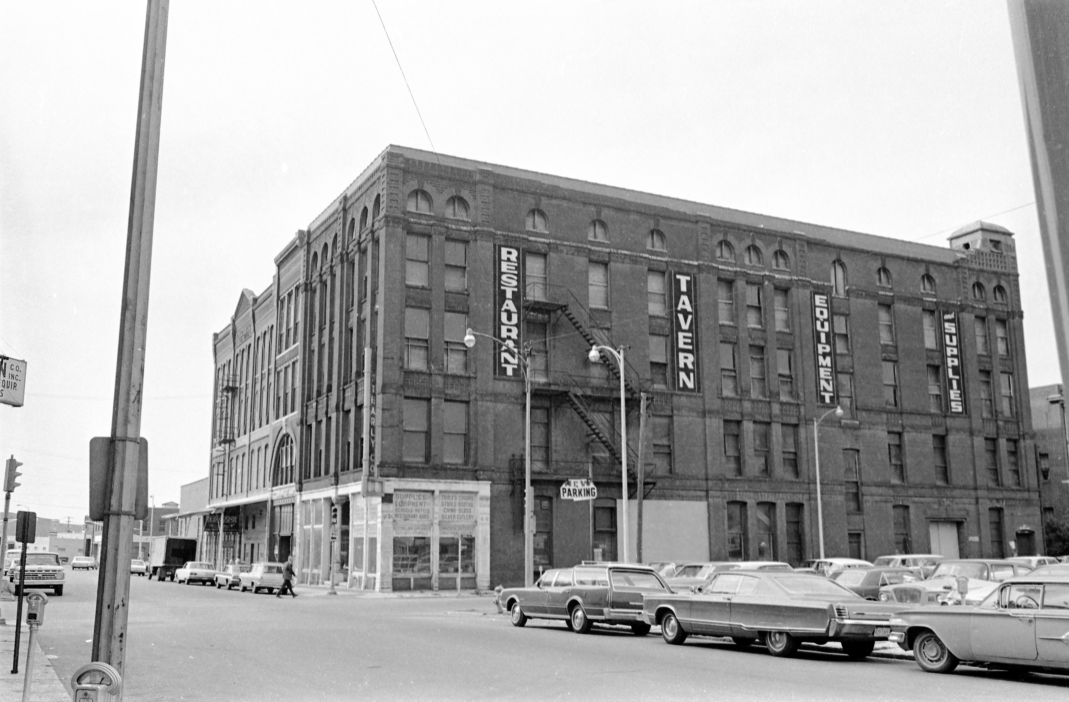 Stearly Co. restaurant equipment at 201 NW 1st St. (listed in the 1962 city directory and the address as vacant in 1964's) The cross street here is Vine St. Red Spot Paint & Varnish Co. had several operations in this block, so it's unclear which one is pictured here. (SEE MSS 228-0807 for the reverse view of this block.)