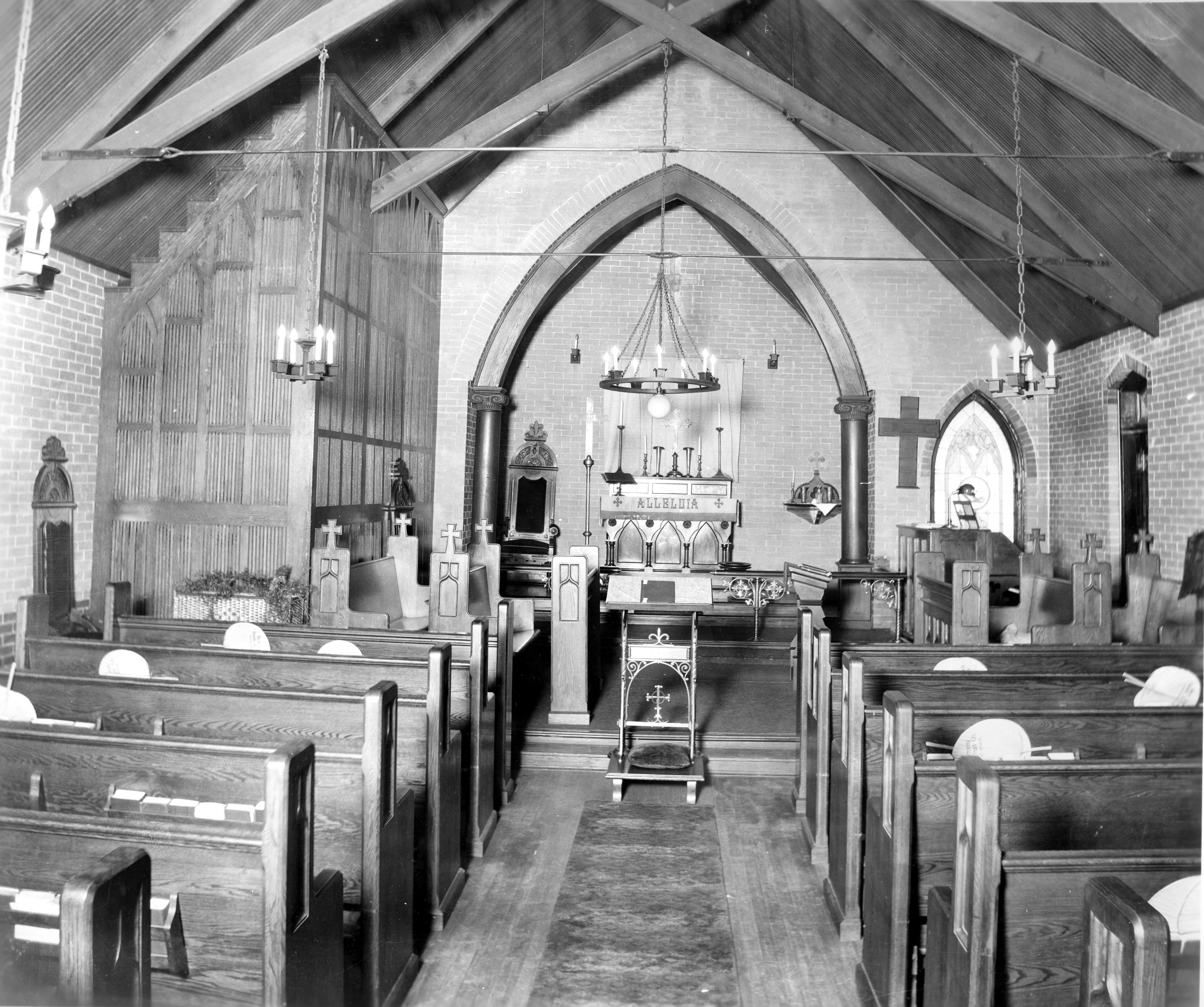 Sanctuary of St. Stephen's Episcopal Church at 318 Main St.This church was consecrated June 14, 1855, but apparently before that the congregation used a portion of the old Rappite church. The church was rebuilt in 1911/1912, with a consecration on February 26, 1912.