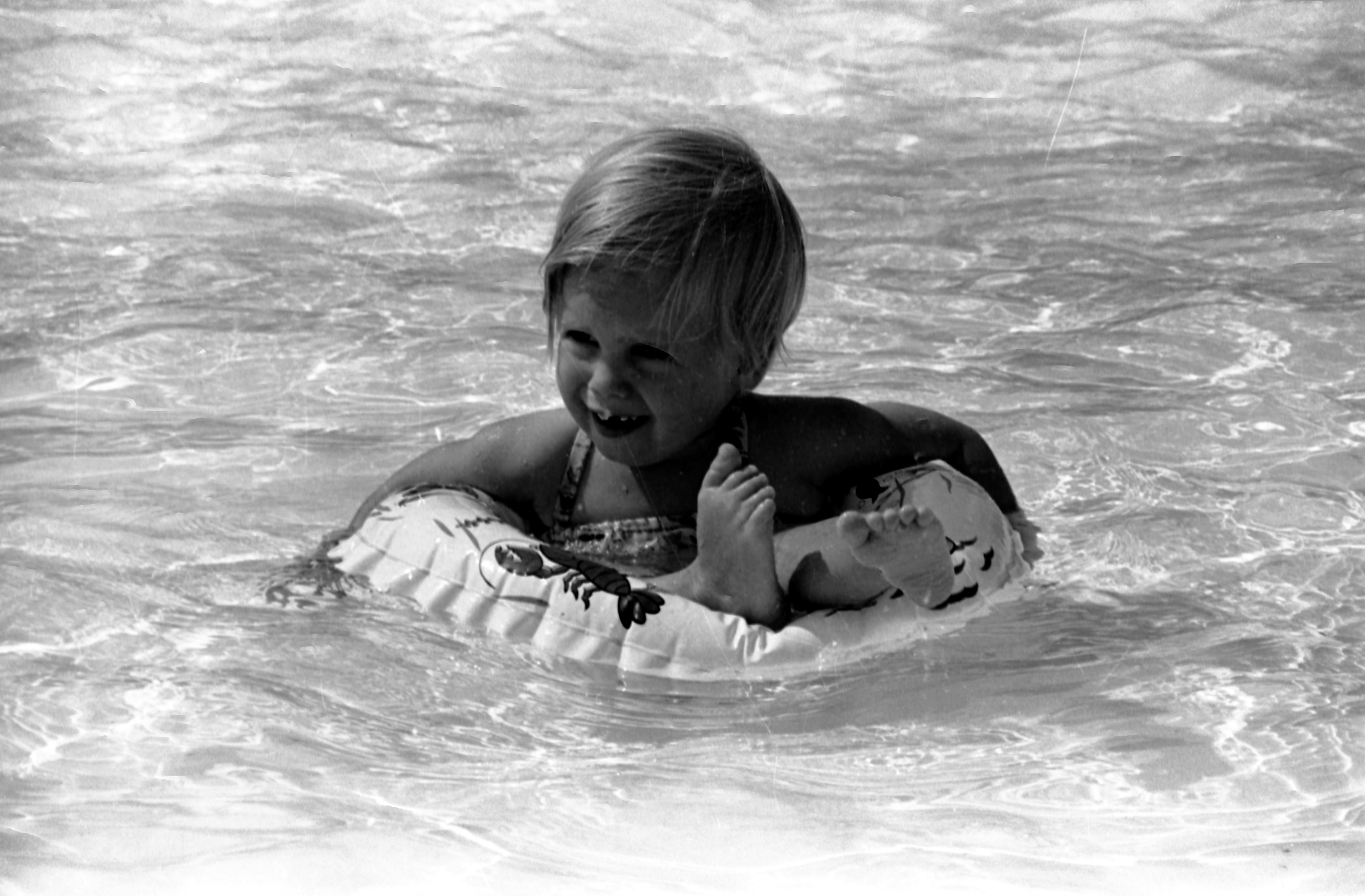 Little girl floating in an innertube in a swimming pool