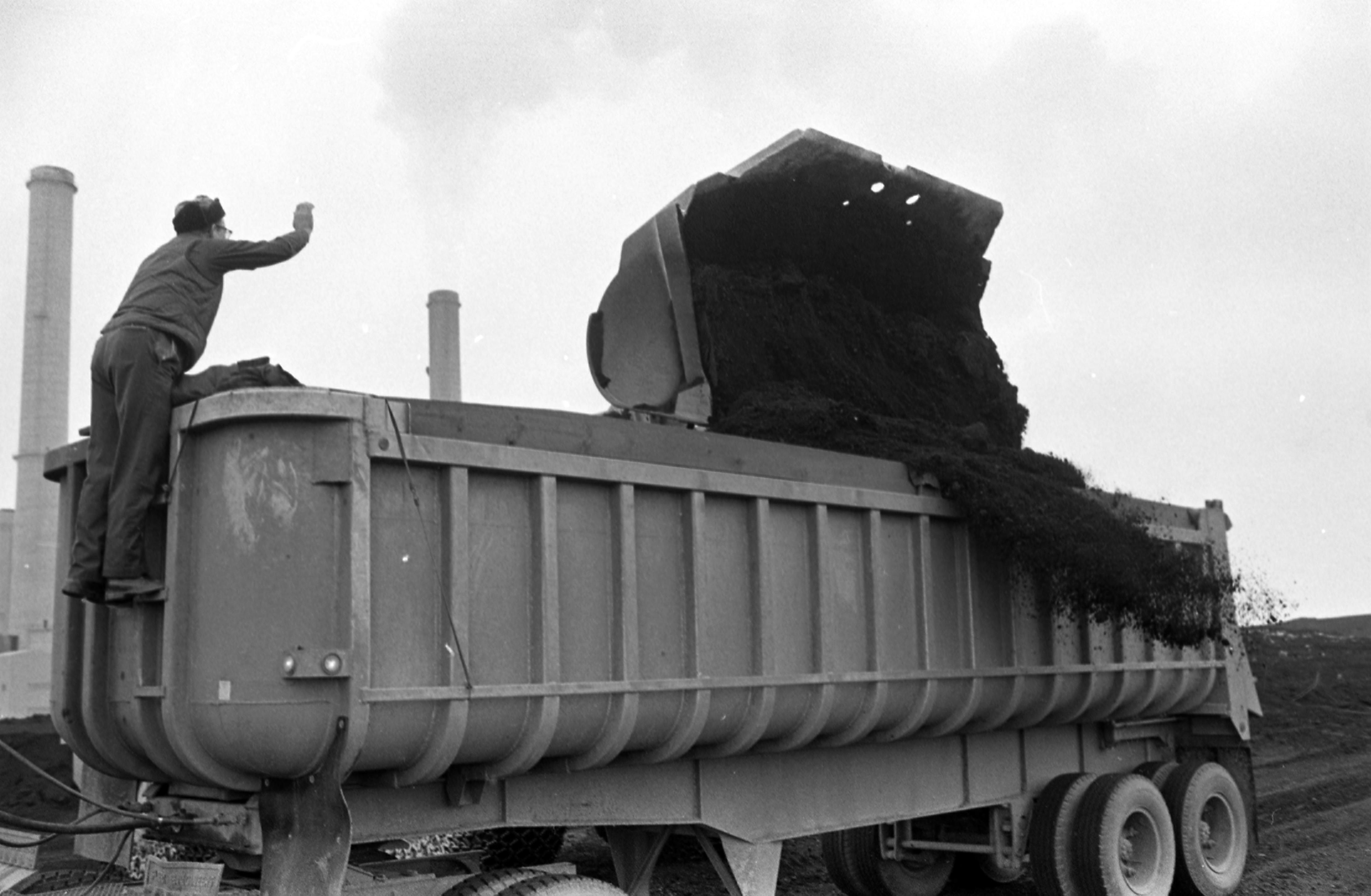 In December 1977 the UMWA (United Mine Workers of America) began a 110 day strike nationally. Violence ensued in many parts of the country, and on February 14, 1978 Indiana governor Otis Bowen ordered the Indiana National Guard to assist the state police in escorting coal convoys in delivering coal to Indiana utilities. Here a coal truck is being loaded for transport.