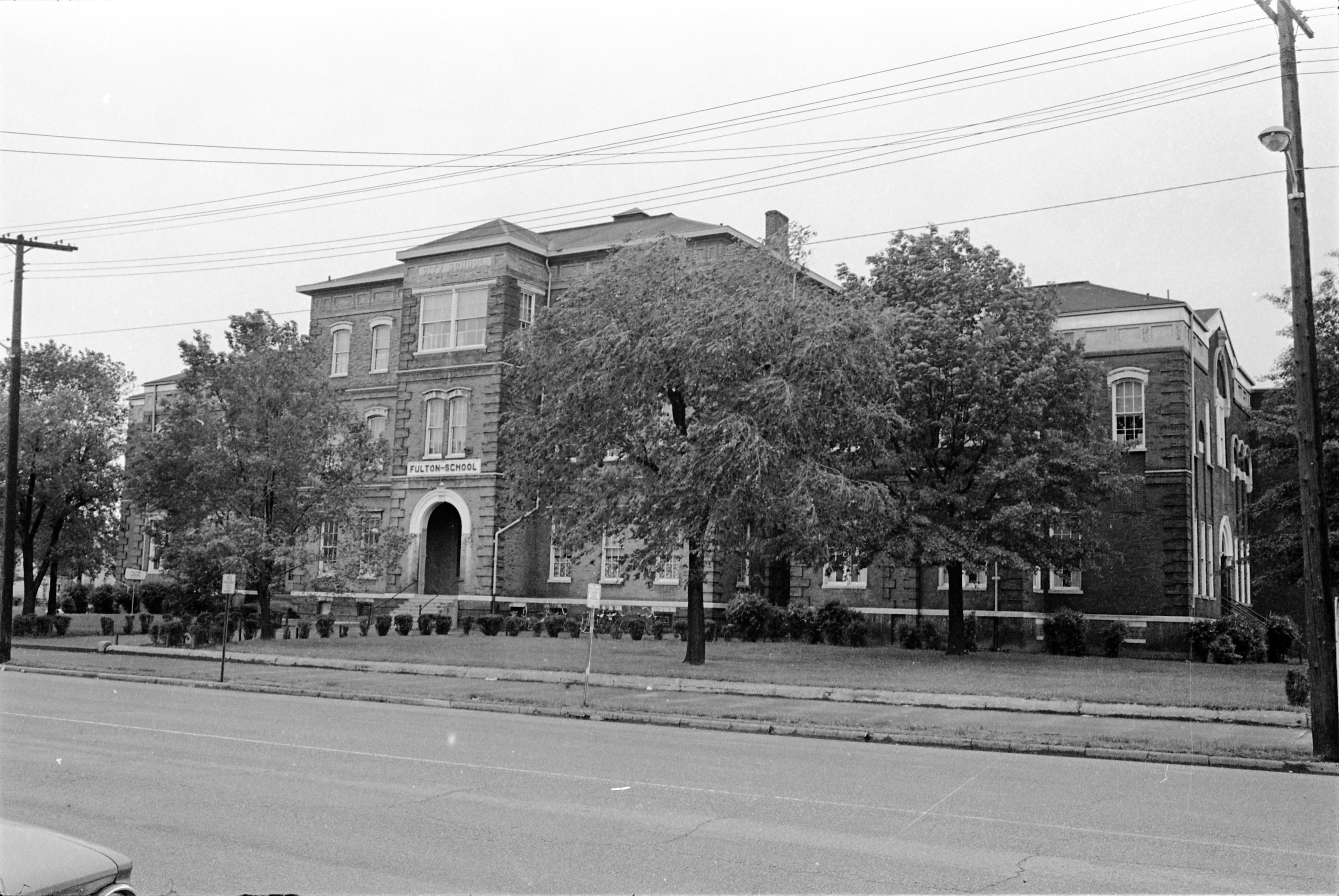 Built in 1870-71, Fulton School at 400 N Fulton Ave. was erected to serve an area of the city then called Lamasco. For its first 20 years or so it was called Fulton Avenue School. It overwent changes over the years, but was razed in 1973. Lewis Bakeries now stands in this location.