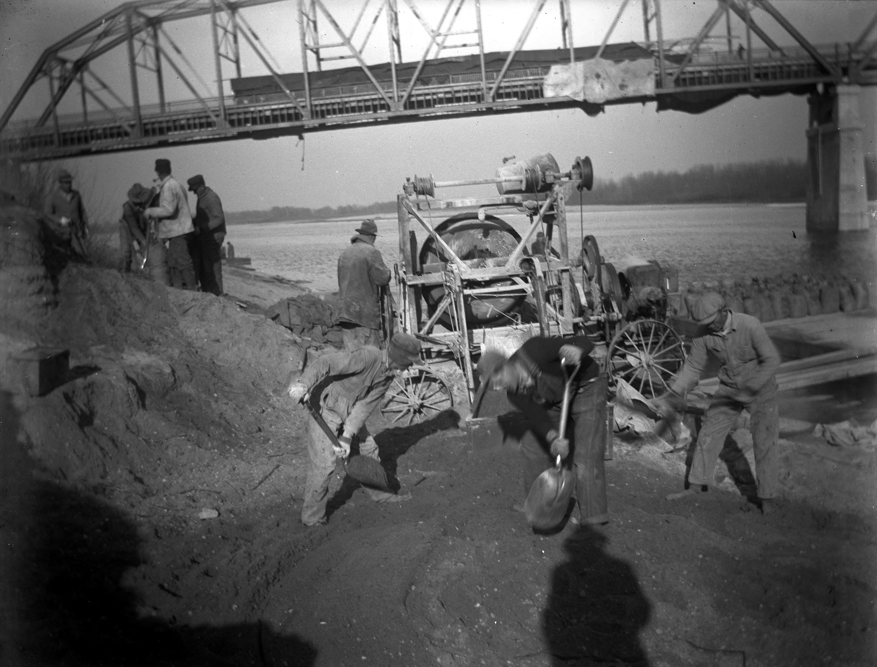 Harmony Way Bridge construction, mixing gravel and cement to fill around pylons. Until the Harmony Way bridge between Posey County, IN and White County, IL was built in 1930, a ferry would have been the only means of access. This bridge is now closed due to being structurally deficient, and lack of funding to effect repairs.