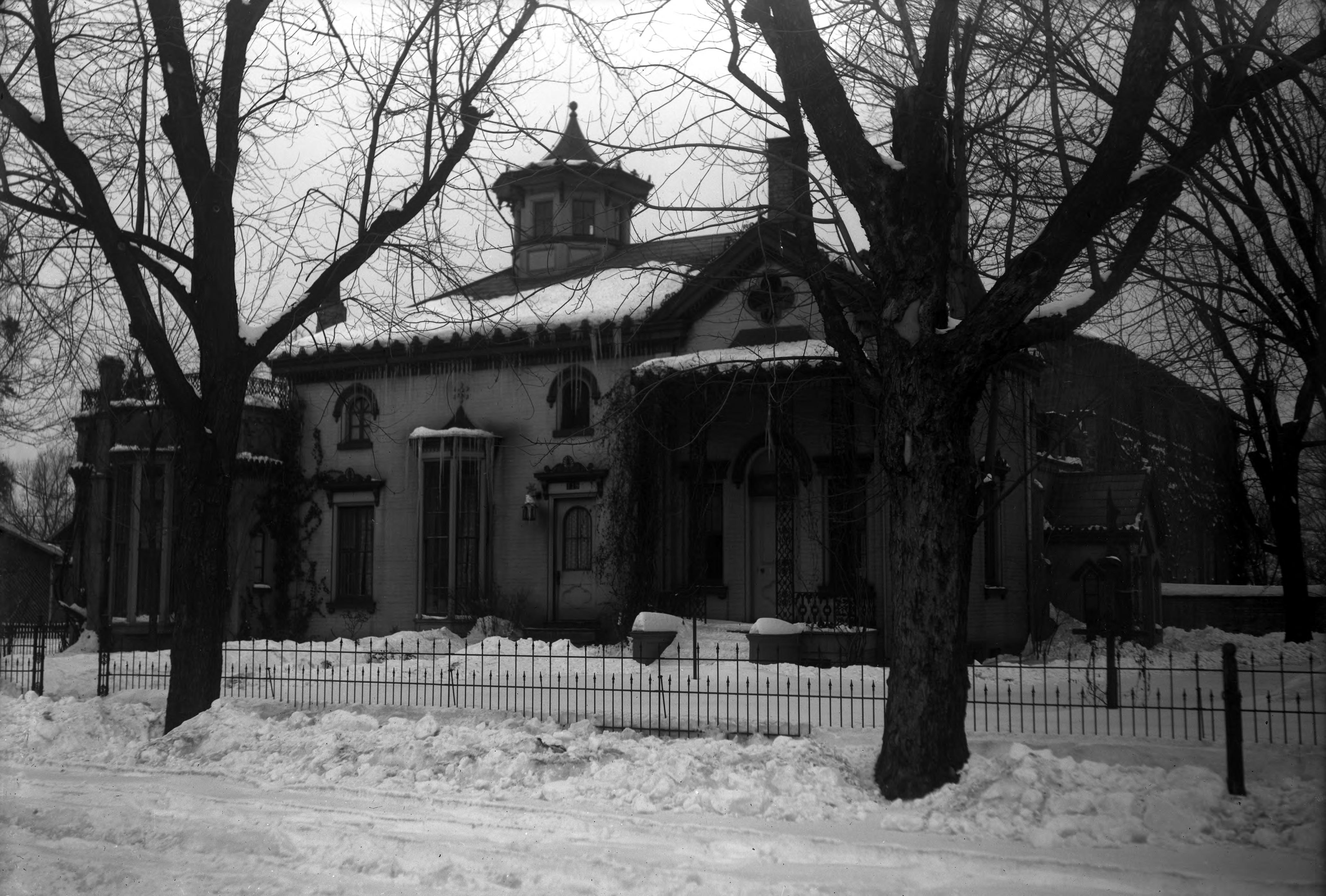 David Dale Owen 4th laboratory.""The David Dale Owen laboratory is an outstanding example of Gothic Revival architecture. Built in 1859, it features a slate roof, a returned boxed cornice, and an octagonal cupola with decorative brackets and a conical roof. It was built by David Dale Owen as a scientific lab, but was never used, as he died in 1860." (http://visitnewharmony.com/playexplore_cpt/david-dale-owen-laboratory/)""David Dale Owen (1807-1860), third son of Robert Owen, gained his geologic knowledge and passion from interactions with William Maclure and Gerard Troost in New Harmony. In 1836, he was appointed the State Geologist for Indiana (1837 to 1839), and in 1839 he was appointed U.S. Geologist by Congress. He led federal surveys from 1839 to 1840 and from 1847 to 1851 in the Middle West of the United States. In 1846, Owen proposed that the Smithsonian Institution be constructed of the distinctive red-brown colored Seneca Creek Sandstone. He also worked as State Geologist of Kentucky from 1854 to 1857; State Geologist of Arkansas from 1857 to 1859; and he returned as Indiana State Geologist from 1859 to 1860. His geologic studies focused on the economic importance of natural resources, such as ores and coal, to the westward expansion of the United States. David Dale used several buildings in New Harmony for his geologic studies. His first laboratory was Community House No. 1 used to store geological specimens, conduct experiments, and house William Maclure�s mineral collection from 1826 to 1828. Soon thereafter, the Harmonist Shoe factory was remodeled and became David Dale�s second geological laboratory in New Harmony. Most notable is the use of the Harmonist Granary as his 3rd laboratory from 1843 to 1856, and the home of the precursor to the U.S. Geological Survey. His 4th geology laboratory is located next to the Granary, and is easily identified by its geologic themed weathervane modeled after three fossils: a blastoid, Archimedes (cork-screw shape), and a fossil fish." (https://www.usi.edu/science/geology-and-physics/new-harmony/geologists/).