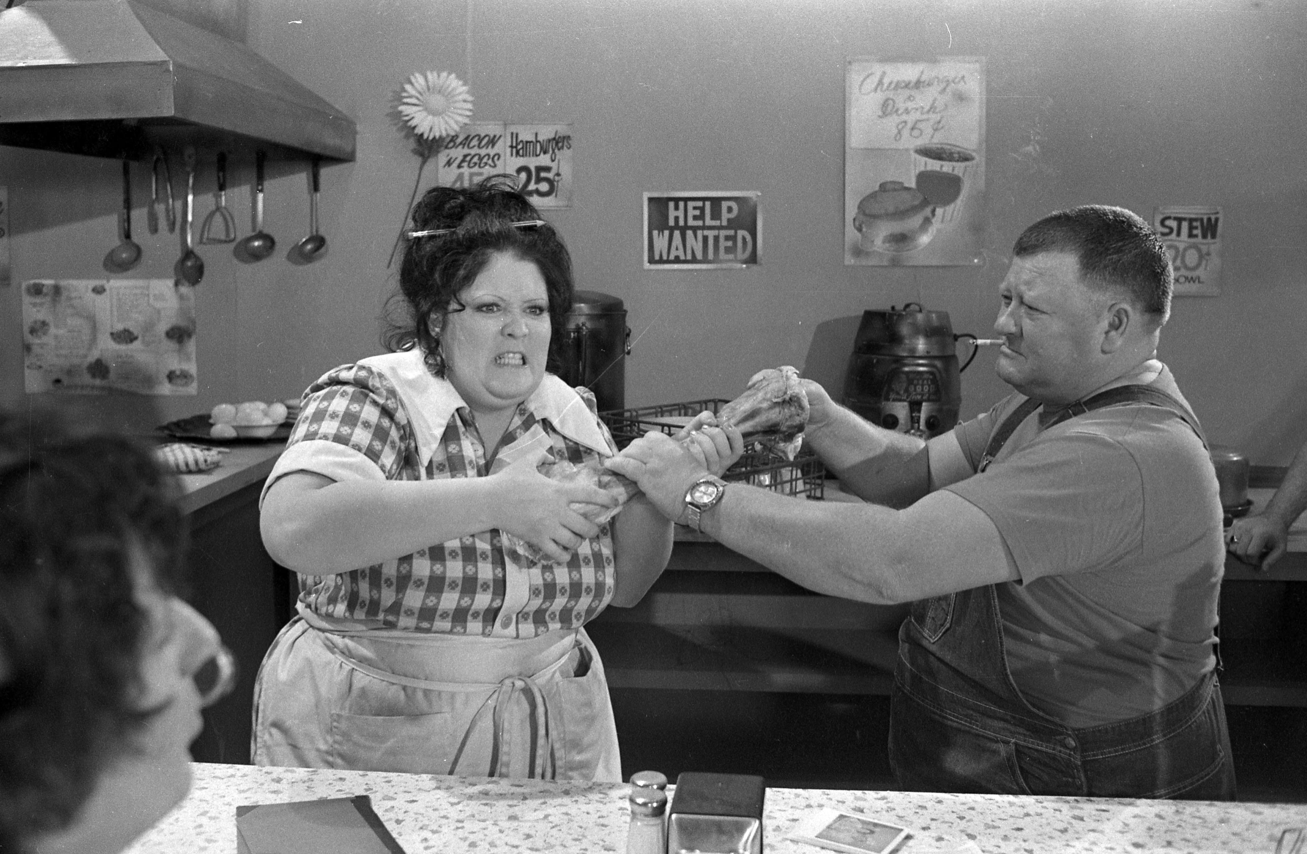 Evansville Courier photographer Sonny Brown was a friend of Hee Haw cast member Grandpa Jones, who was born in Niagara, KY (in Henderson County---just across the river from Evansville, IN) and thus was able to visit the set and take lots of backstage photographs. Here are Lulu Roman and Junior Samples.