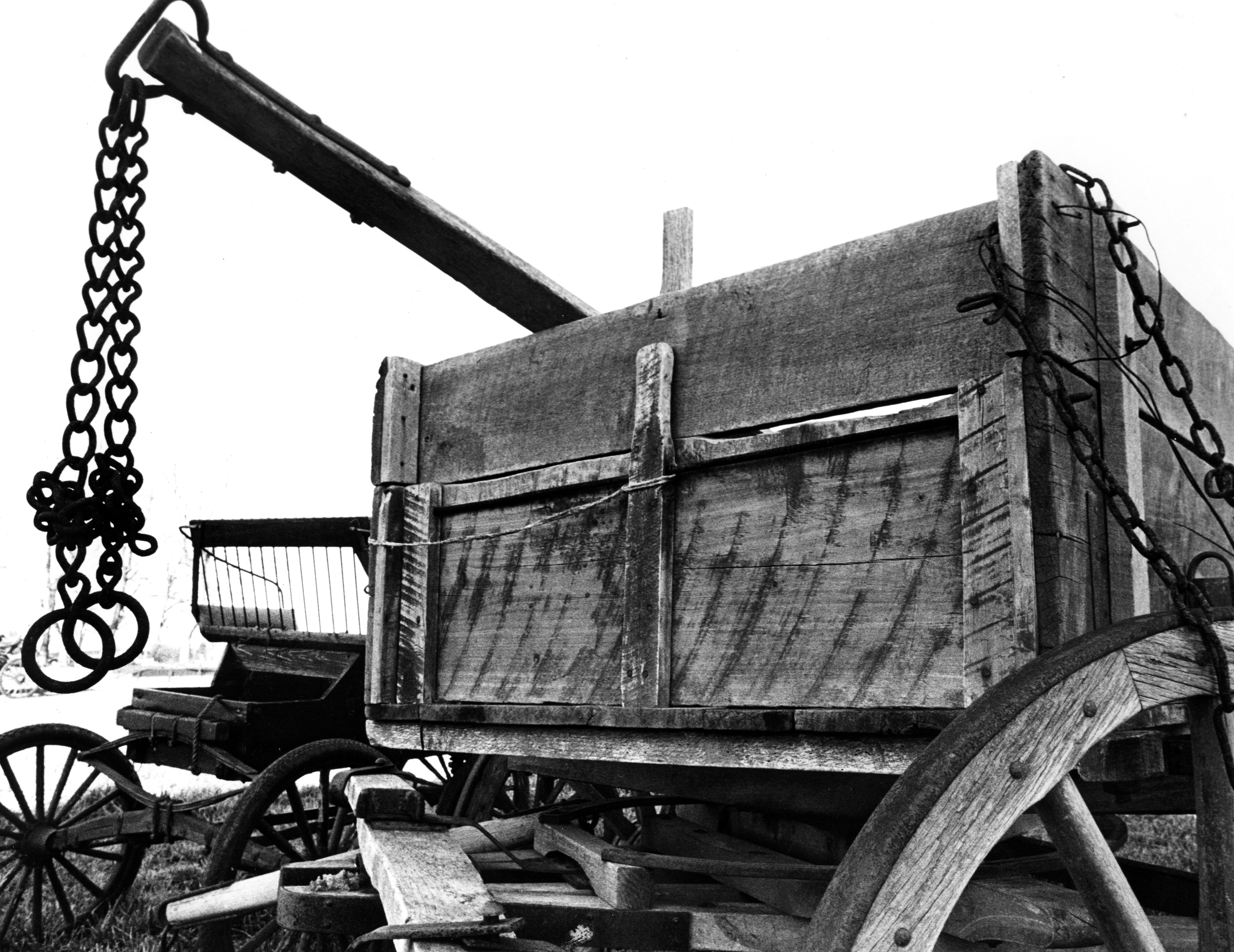 Horse-drawn buggy and farm wagon.