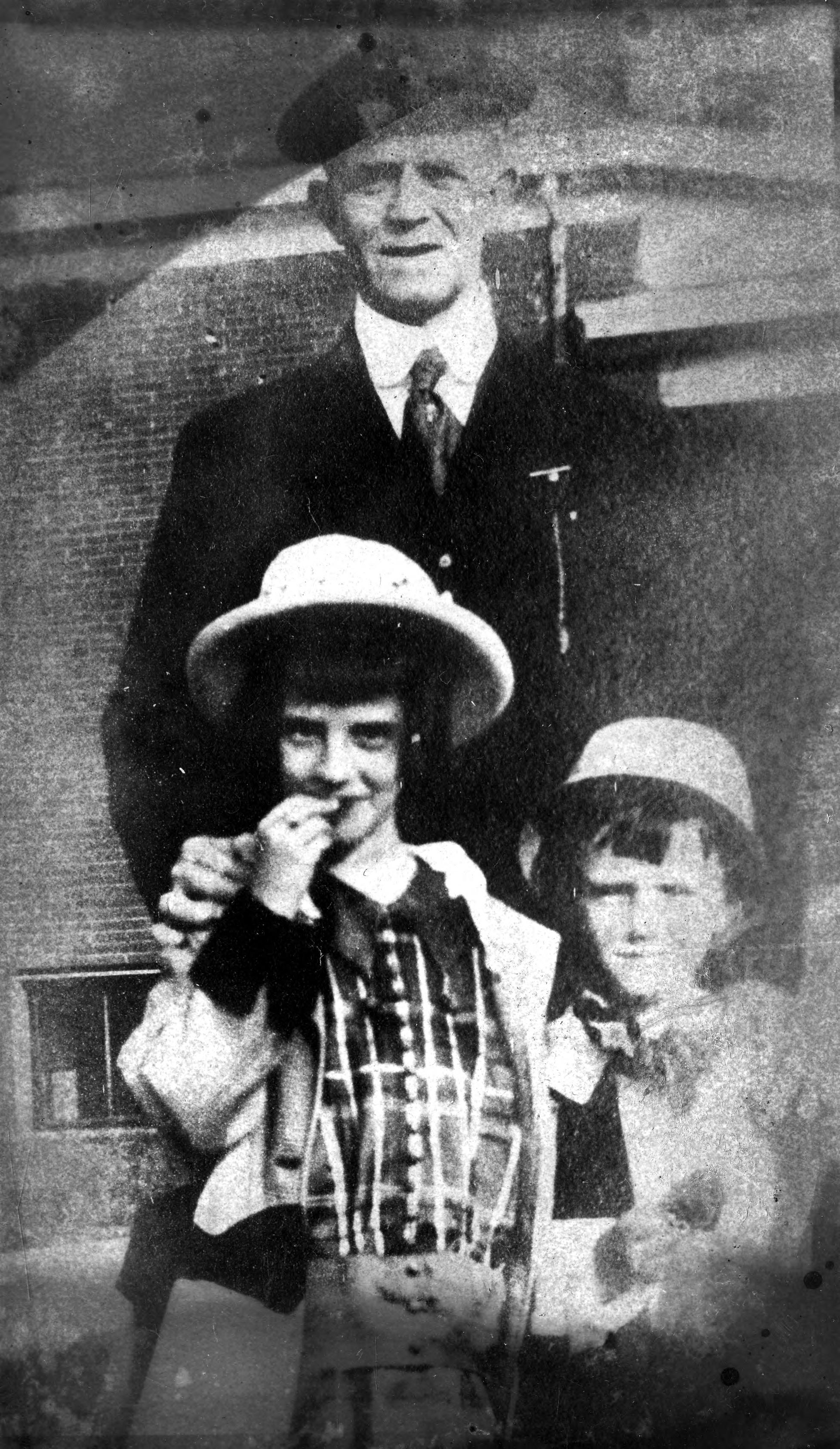 Homer Fauntleroy and two children. These are not his children, as he only had one child, a son, with his first wife, and that boy was born in 1890, when Homer would have been 24. The smaller child here, if a boy (gender uncertain), would be entirely too young for a father of the age Homer appears to be here.
