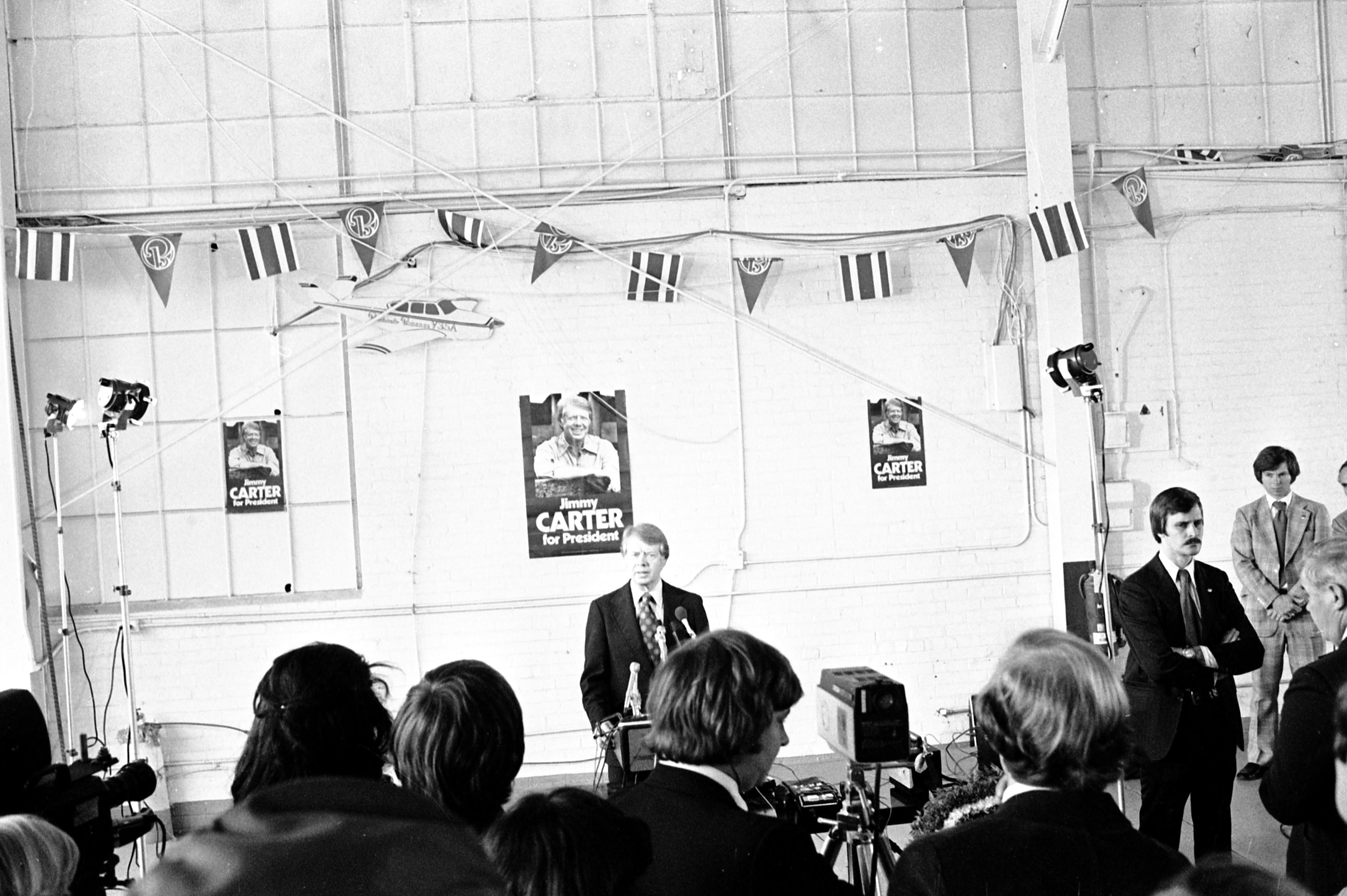 Jimmy Carter on the U.S. presidential campaign trail, at a news conference