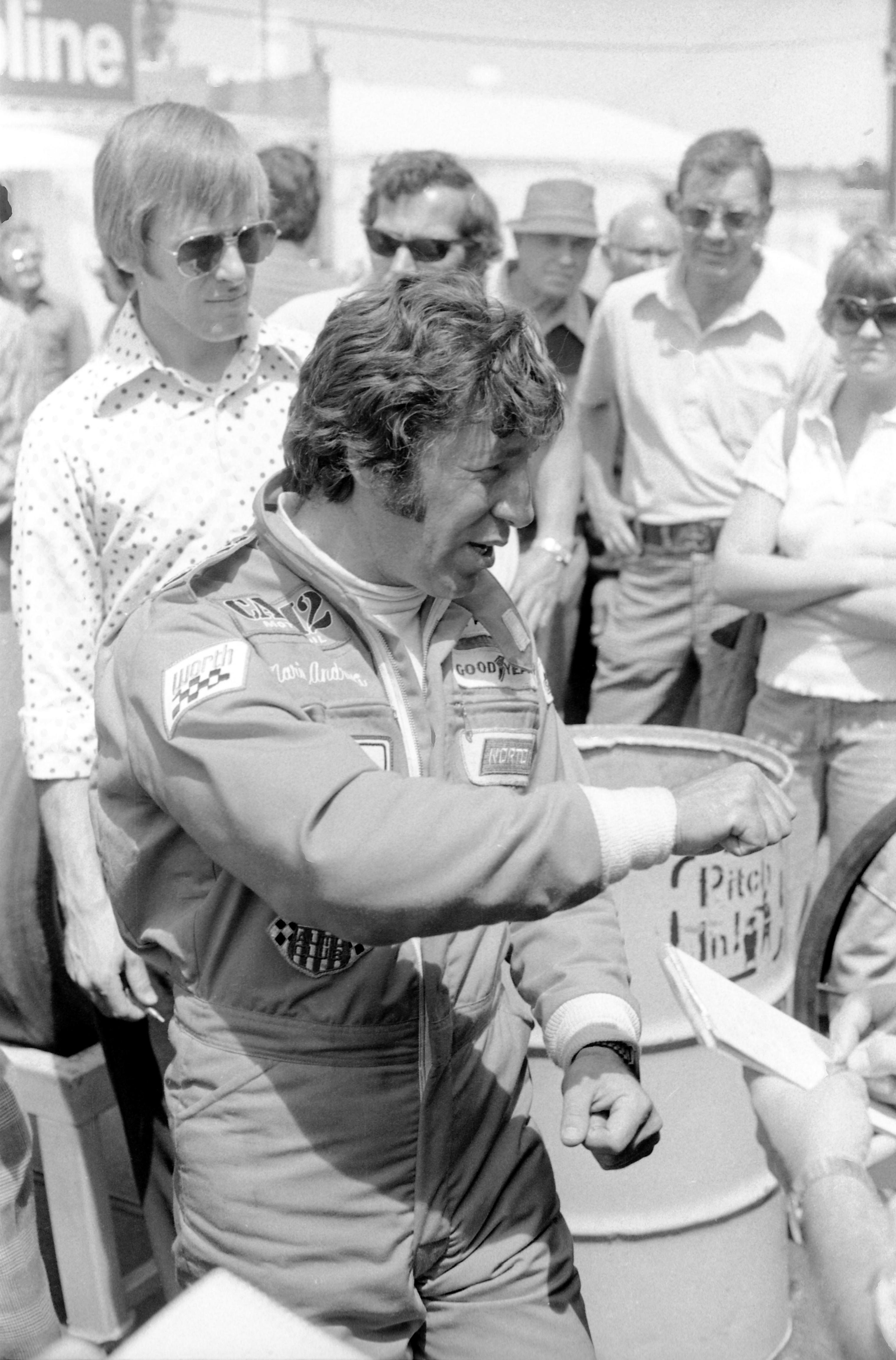 Mario Andretti at the Indianapolis 500 in Indianapolis, Indiana