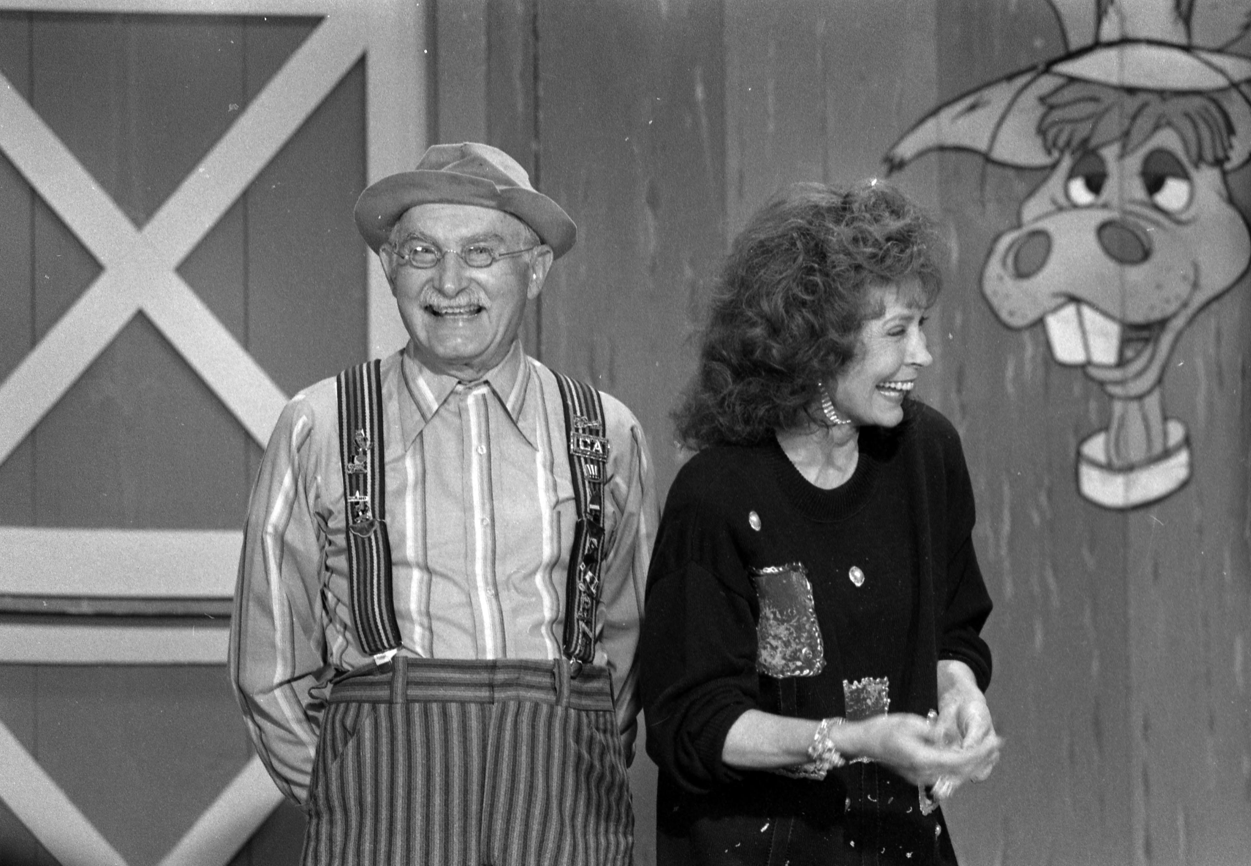 Evansville Courier photographer Sonny Brown was a friend of Hee Haw cast member Grandpa Jones, who was born in Niagara, KY (in Henderson County---just across the river from Evansville, IN) and thus was able to visit the set and take lots of backstage photographs. Here are Grandpa Jones and Loretta Lynn.