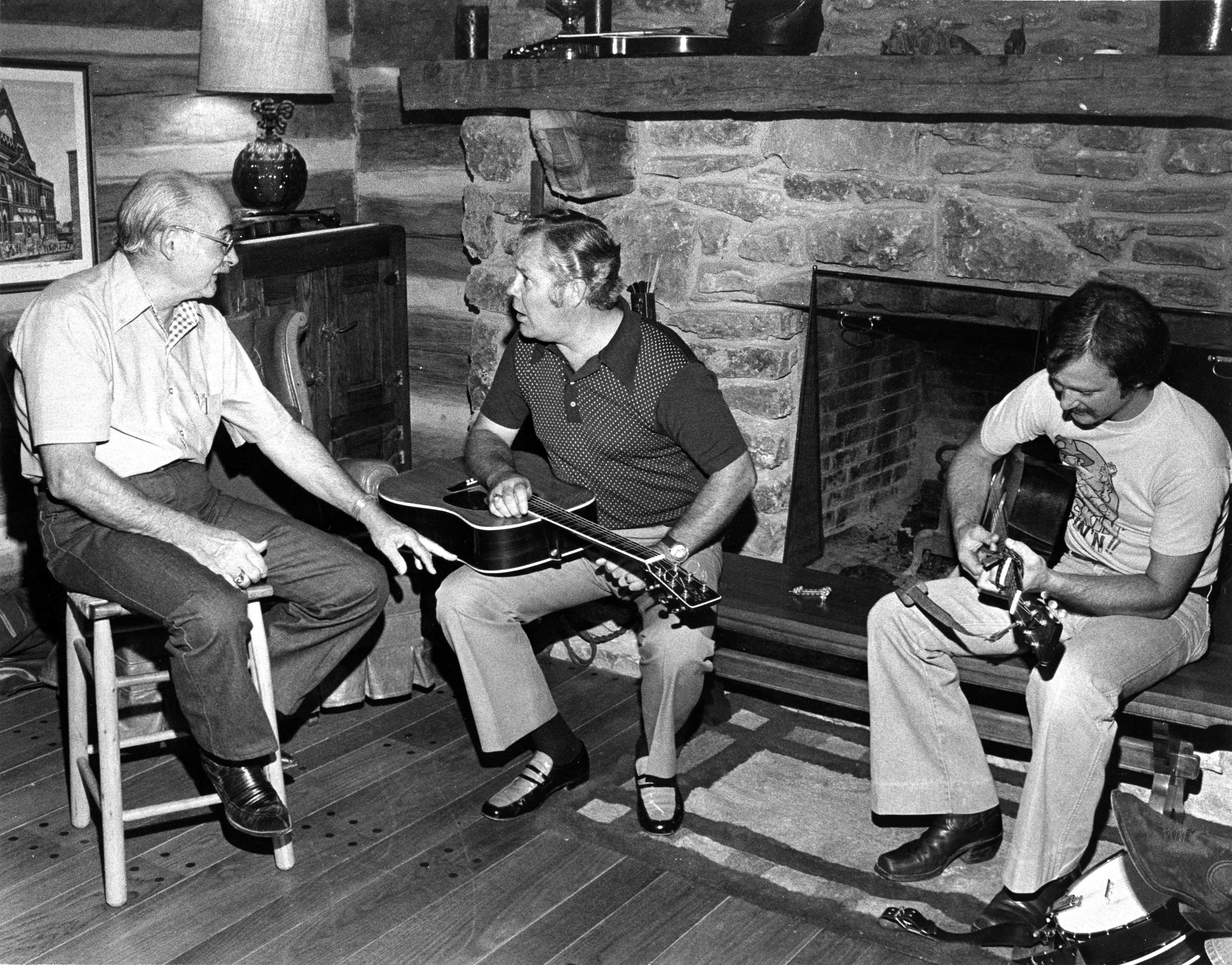 Evansville Courier photographer Sonny Brown was a friend of Hee Haw cast member Grandpa Jones, who was born in Niagara, KY (in Henderson County---just across the river from Evansville, IN) and thus was able to visit the set and take lots of backstage photographs. Here are Grandpa Jones and Billy Grammer.