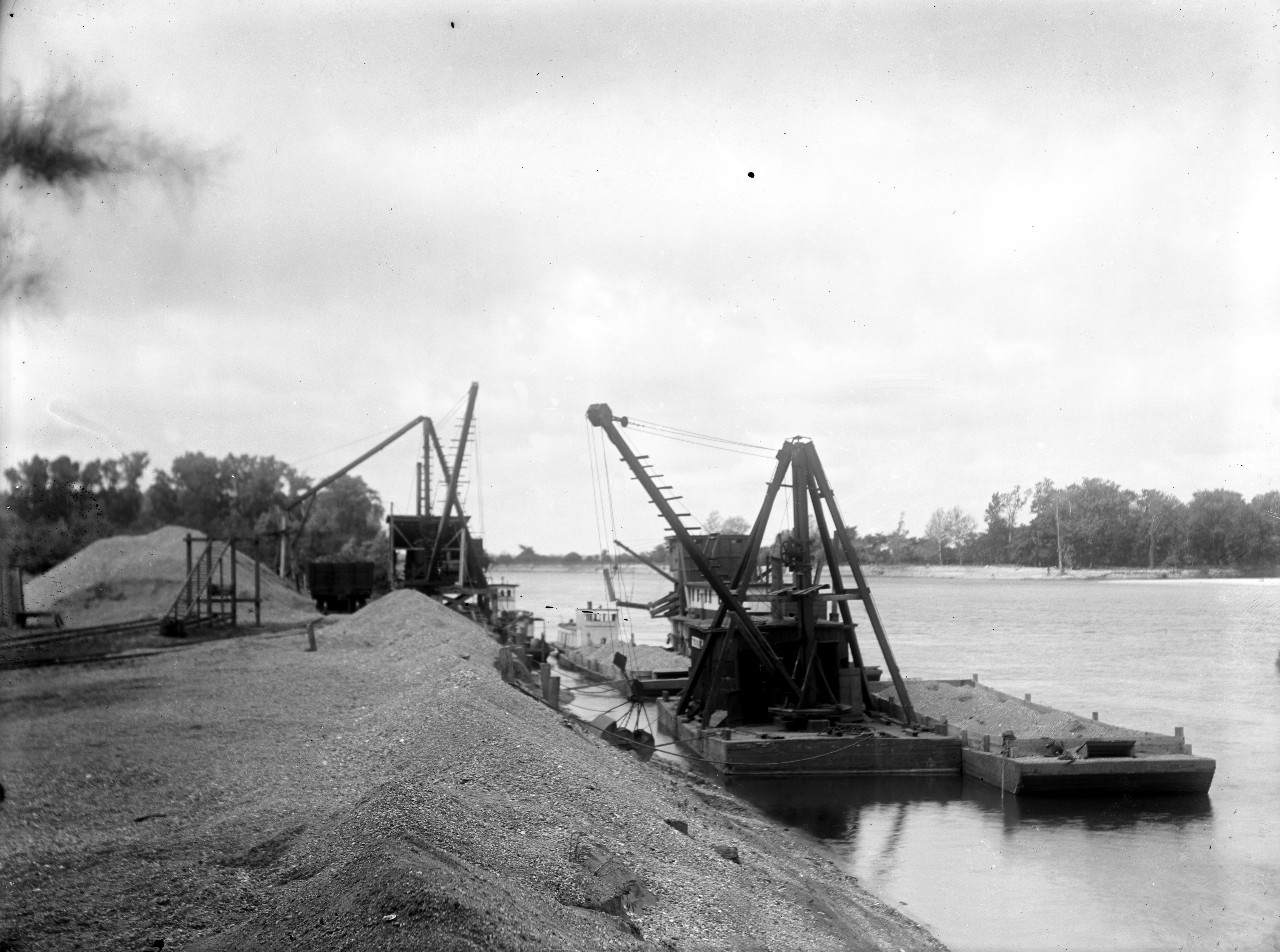 Loading gravel barges on the Wabash River in New Harmony, Indiana
