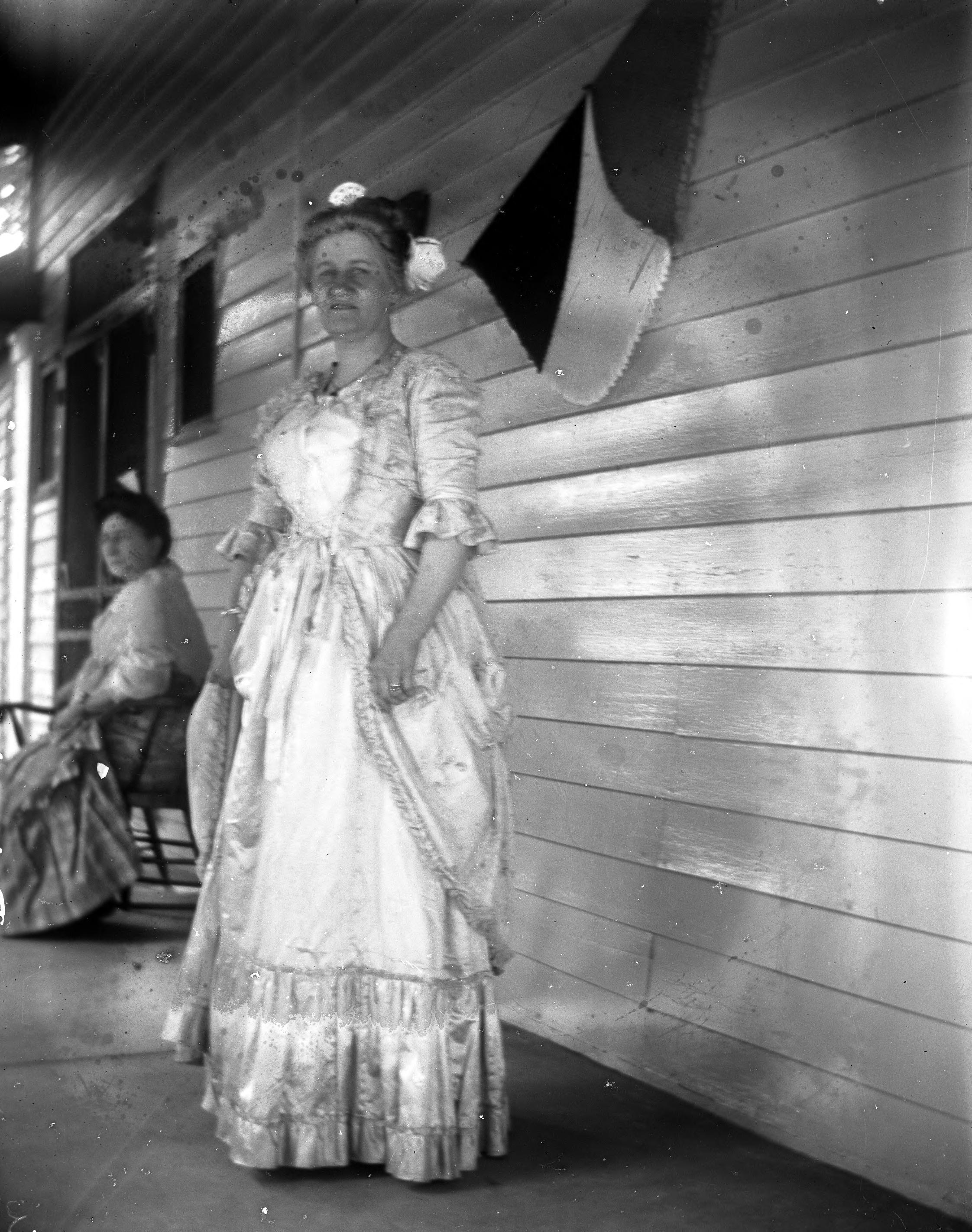 Millie Cox on porch at Fauntleroy home, presumably the house at 411 West St.
