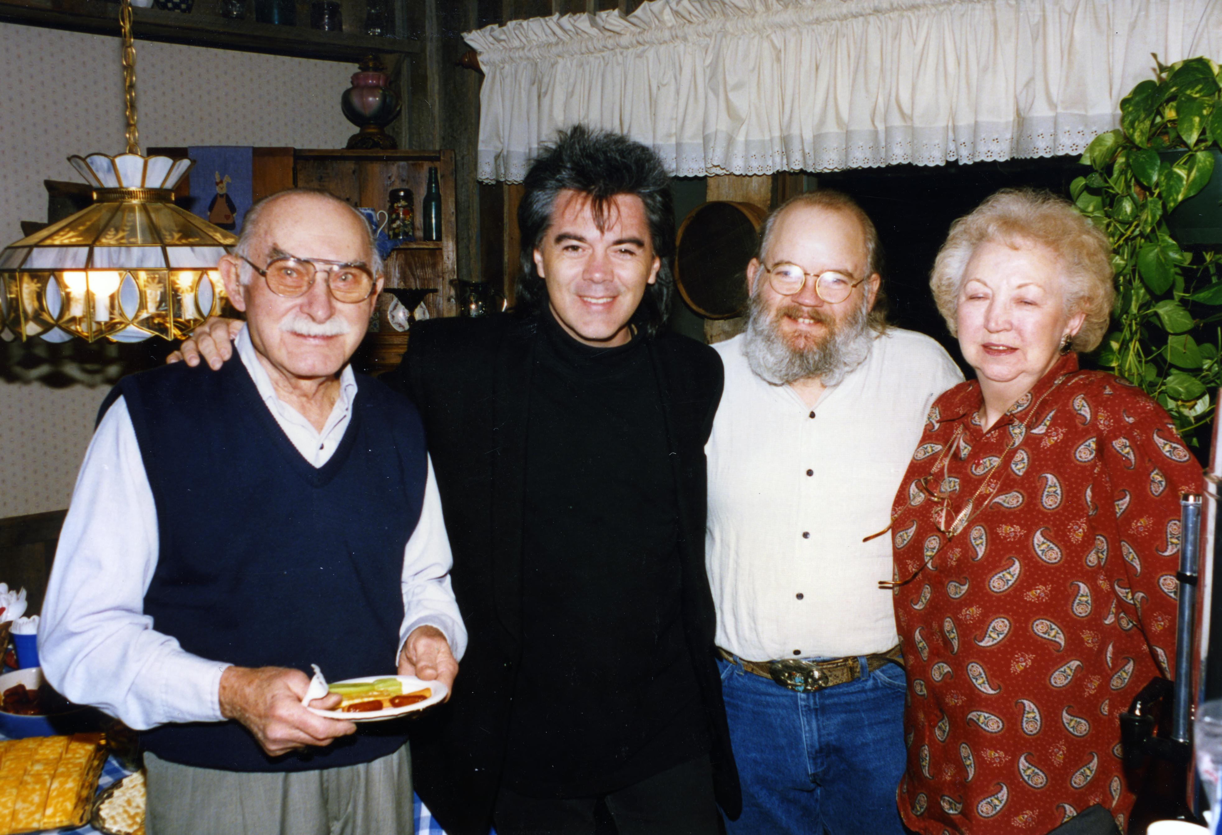 Evansville Courier photographer Sonny Brown was a friend of Hee Haw cast member Grandpa Jones, who was born in Niagara, KY (in Henderson County---just across the river from Evansville, IN) and thus was able to visit the set and take lots of backstage photographs. Here are Grandpa Jones, Marty Stuart, Mark Jones (Grandpa's son), and Rose Lee Maphis.