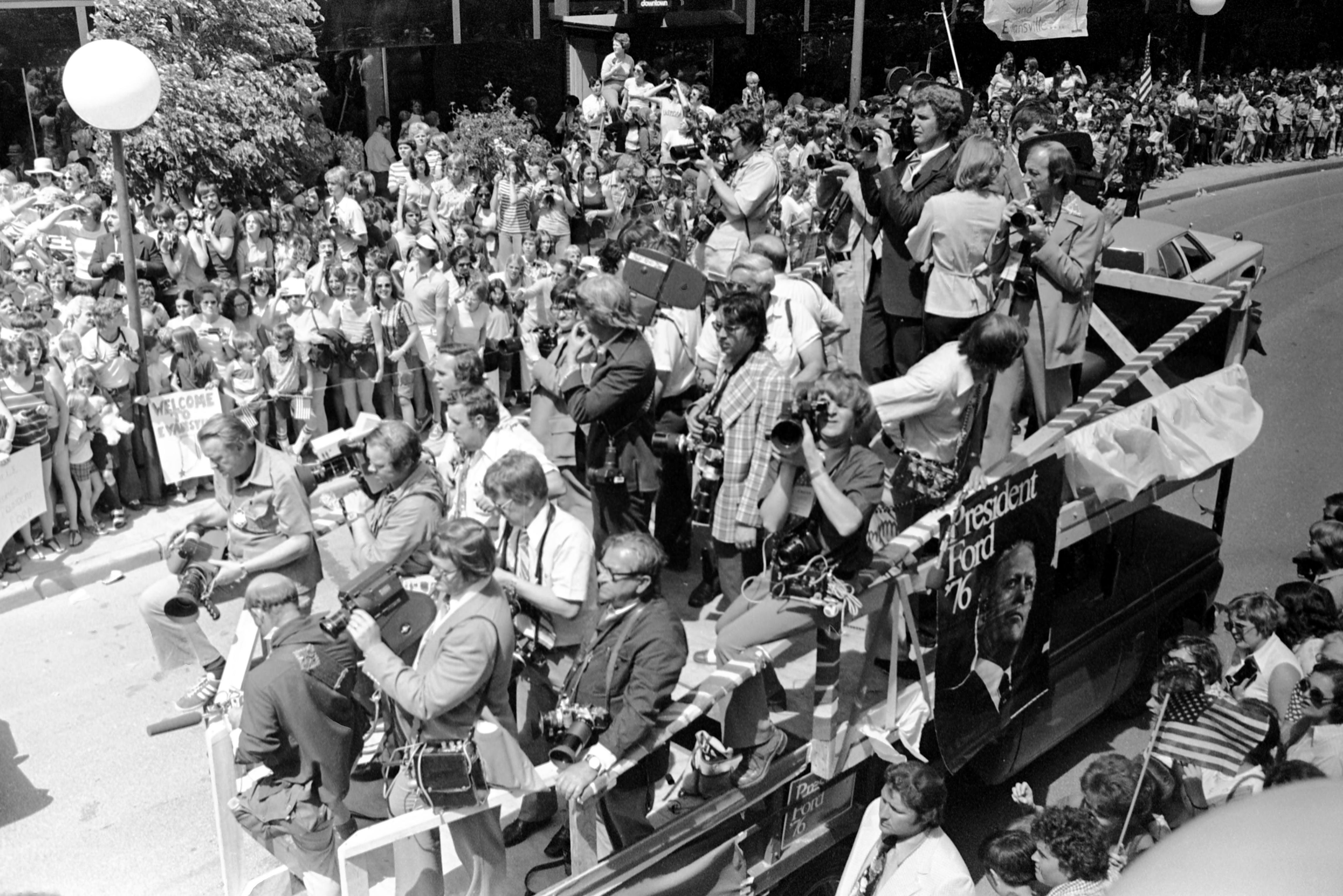 News media covering Gerald Ford's campaign stop