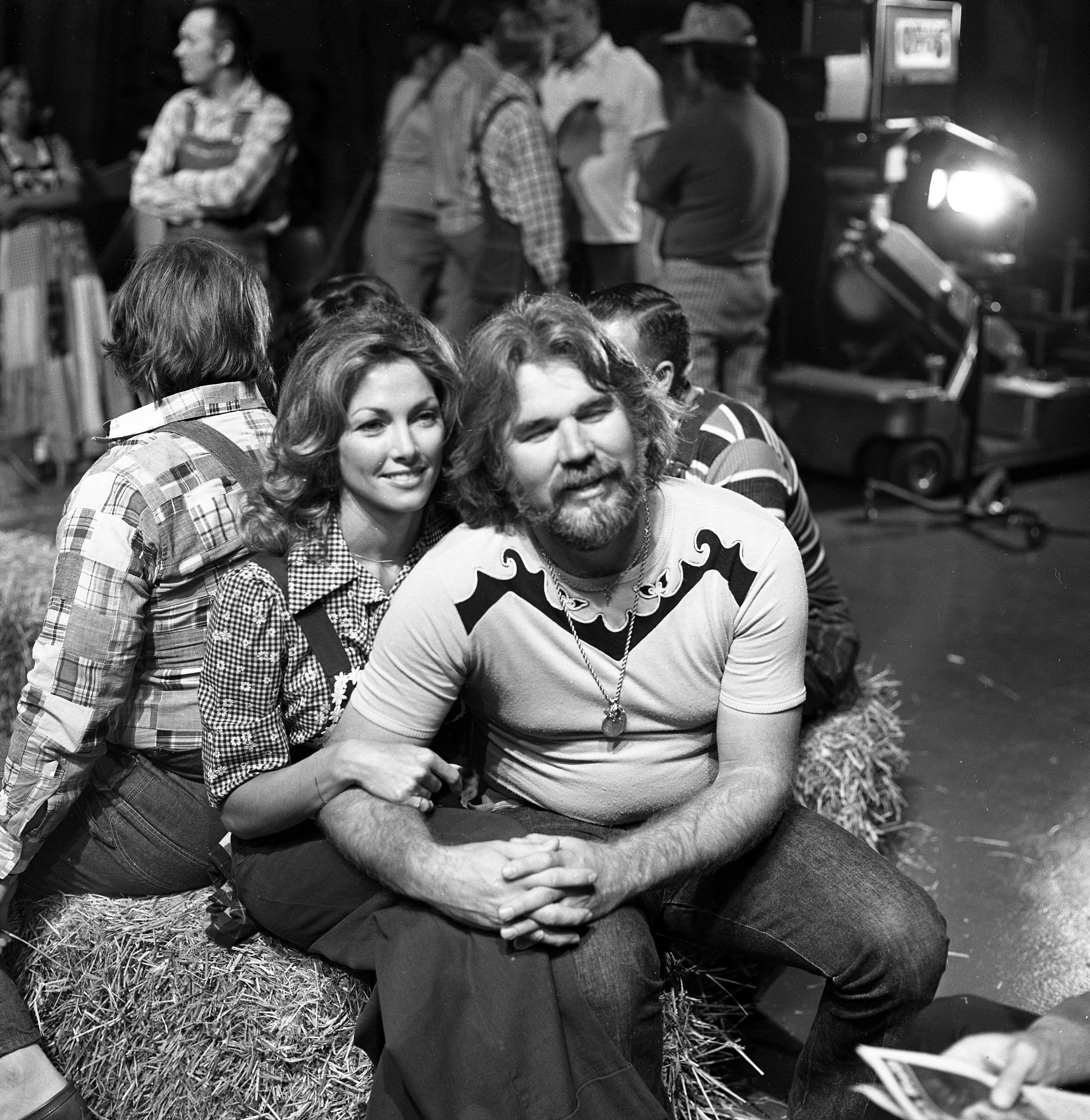 Evansville Courier photographer Sonny Brown was a friend of Hee Haw cast member Grandpa Jones, who was born in Niagara, KY (in Henderson County---just across the river from Evansville, IN) and thus was able to visit the set and take lots of backstage photographs. Here are Marianne Gordon and Kenny Rogers.
