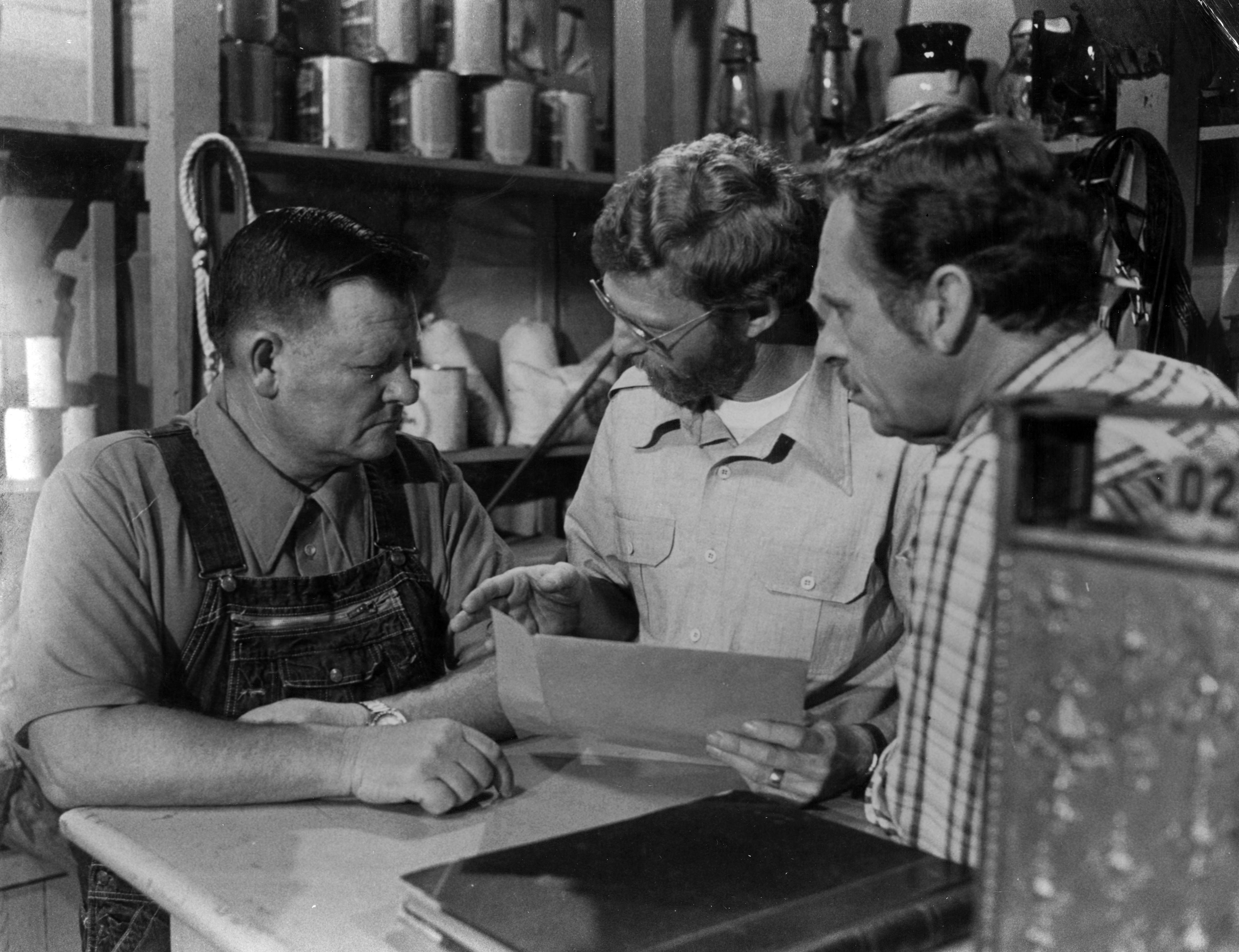 Evansville Courier photographer Sonny Brown was a friend of Hee Haw cast member Grandpa Jones, who was born in Niagara, KY (in Henderson County---just across the river from Evansville, IN) and thus was able to visit the set and take lots of backstage photographs. Here are Junior Samples, Sonny Brown, and gordie Tapp.