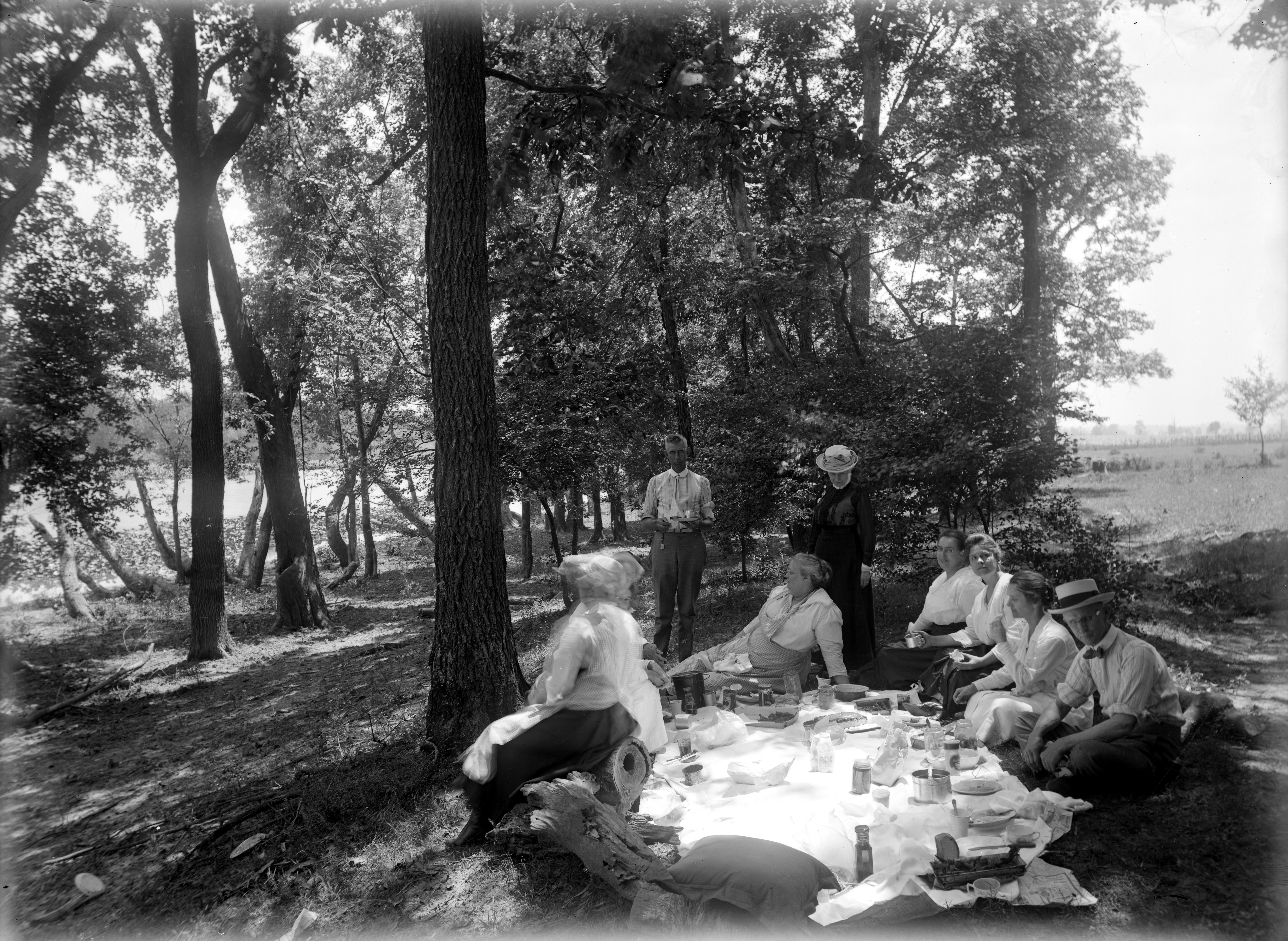 Frank & Ina Bailey (couple standing?) at picnic, with A.C. Thomas far right, and others.