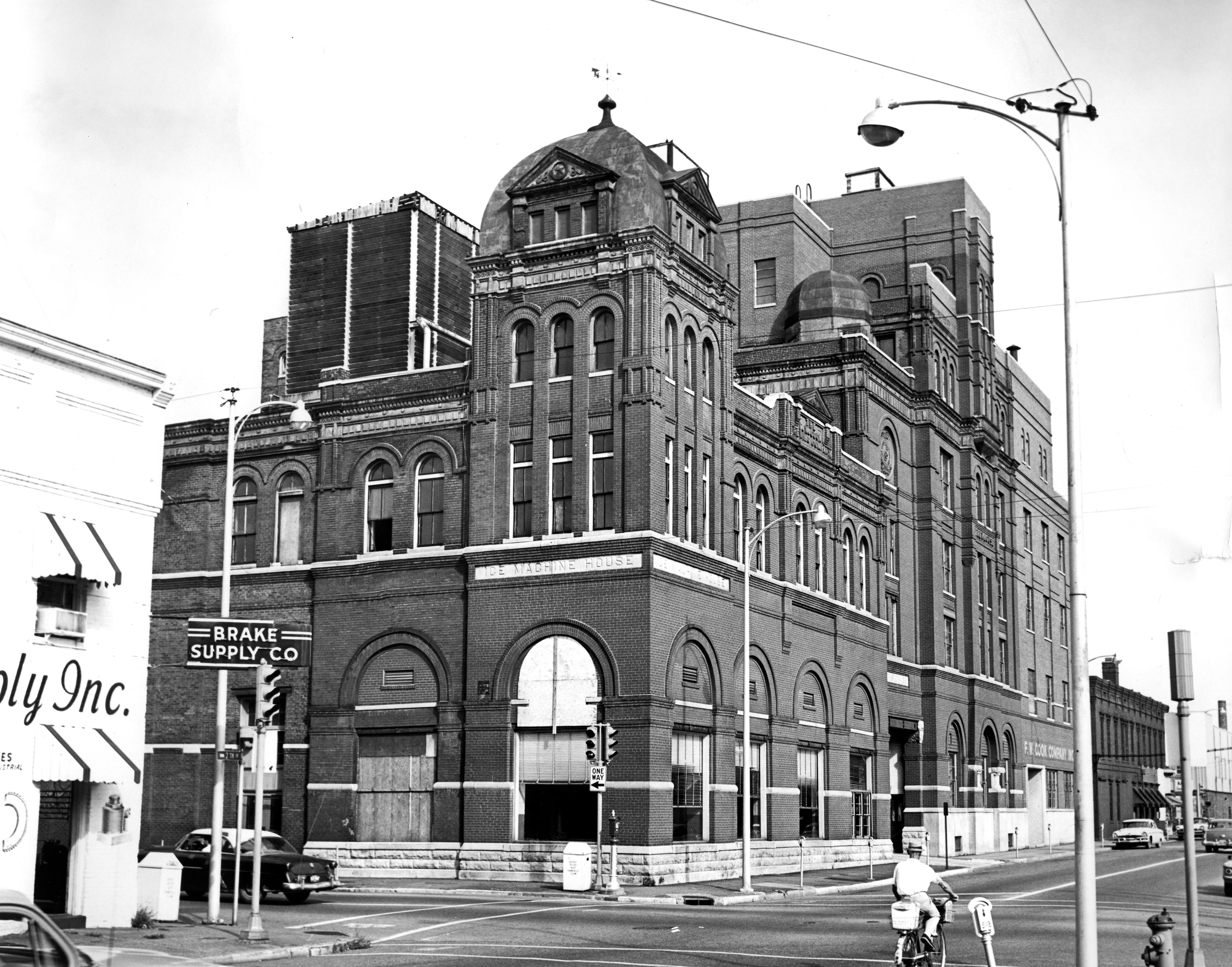F.W. Cook Brewing Co. at 11 NW 7th St. and Brake Supply Co. Inc. at 700 Sycamore St.""The City Brewery was founded in 1853 by Frederick Washington Cook and Jacob Rice in what was then a cornfield beyond downtown. It split from the ""old brewery"" and opened its own at 11 NW 7th St. By 1880, the Cook & Rice City Brewery had an ice house, malt house, stable, and office that covered entire block bounded by 7th (M L King), Sycamore, 8th, and Main. After Rice's death in 1885, it was renamed F W Cook Brewing Co." (http://historicevansville.com/site.php?id=fwcook) Operation ceased in 1957, and in 1965 the building was razed.