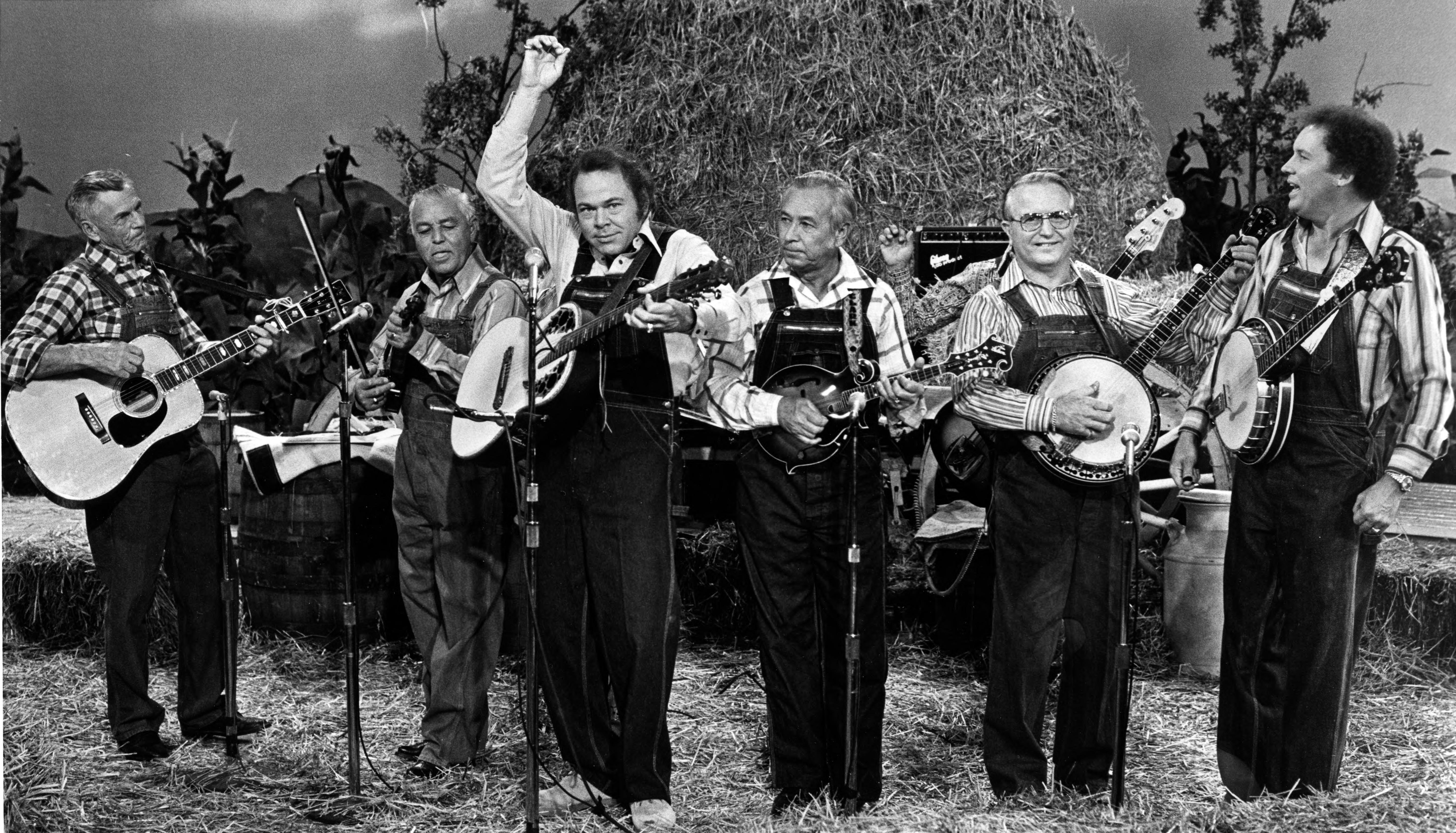 Evansville Courier photographer Sonny Brown was a friend of Hee Haw cast member Grandpa Jones, who was born in Niagara, KY (in Henderson County---just across the river from Evansville, IN) and thus was able to visit the set and take lots of backstage photographs. Here are Roy Acuff's father, Roy's family, Roy Clark, and Buck Trent.