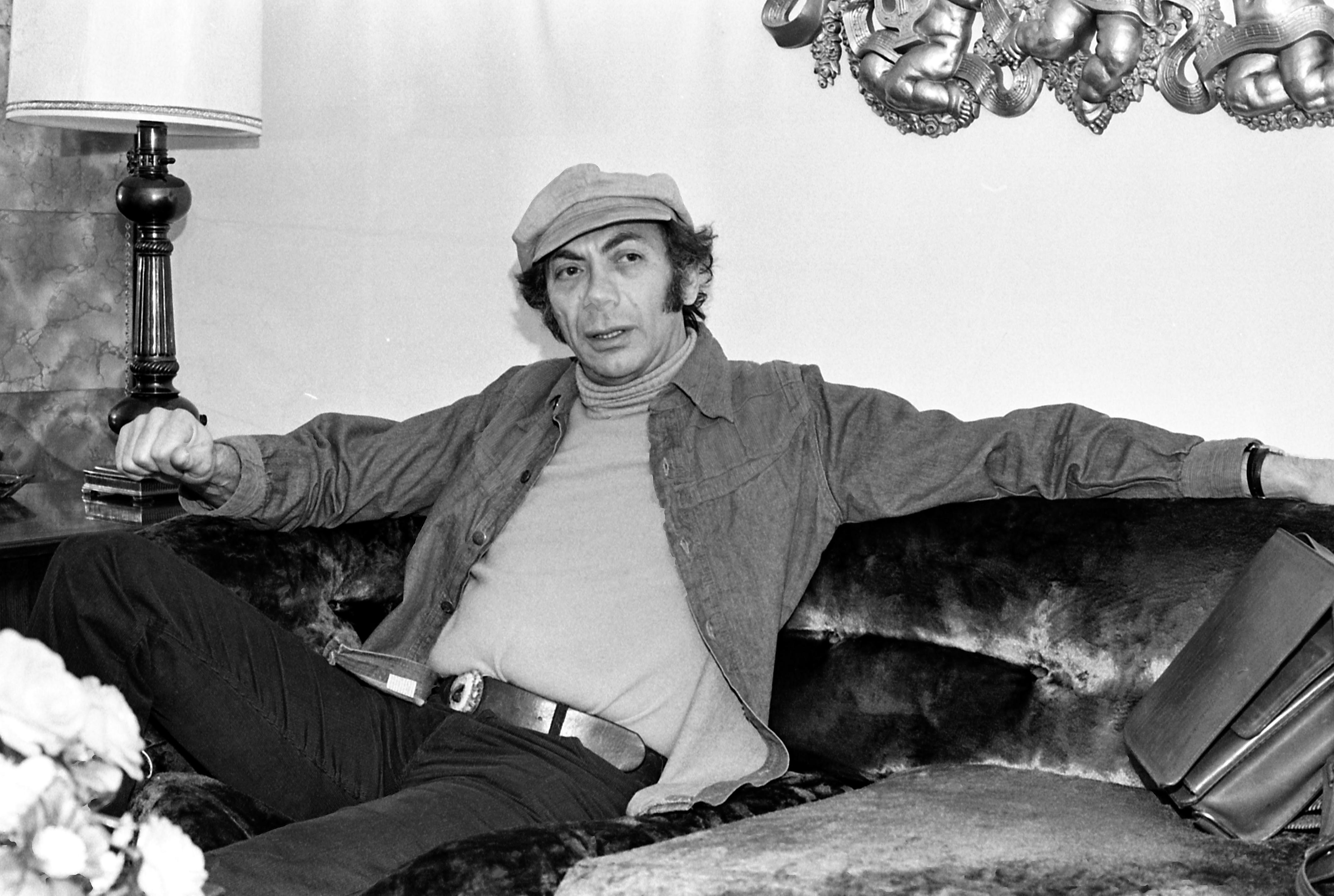 Ed Ames, possibly in a hotel room, having a conversation with someone off camera. He was in town for a week of performances at the Executive Inn (600 Walnut St." and while here, also spoke to theatre students at the University of Evansville.