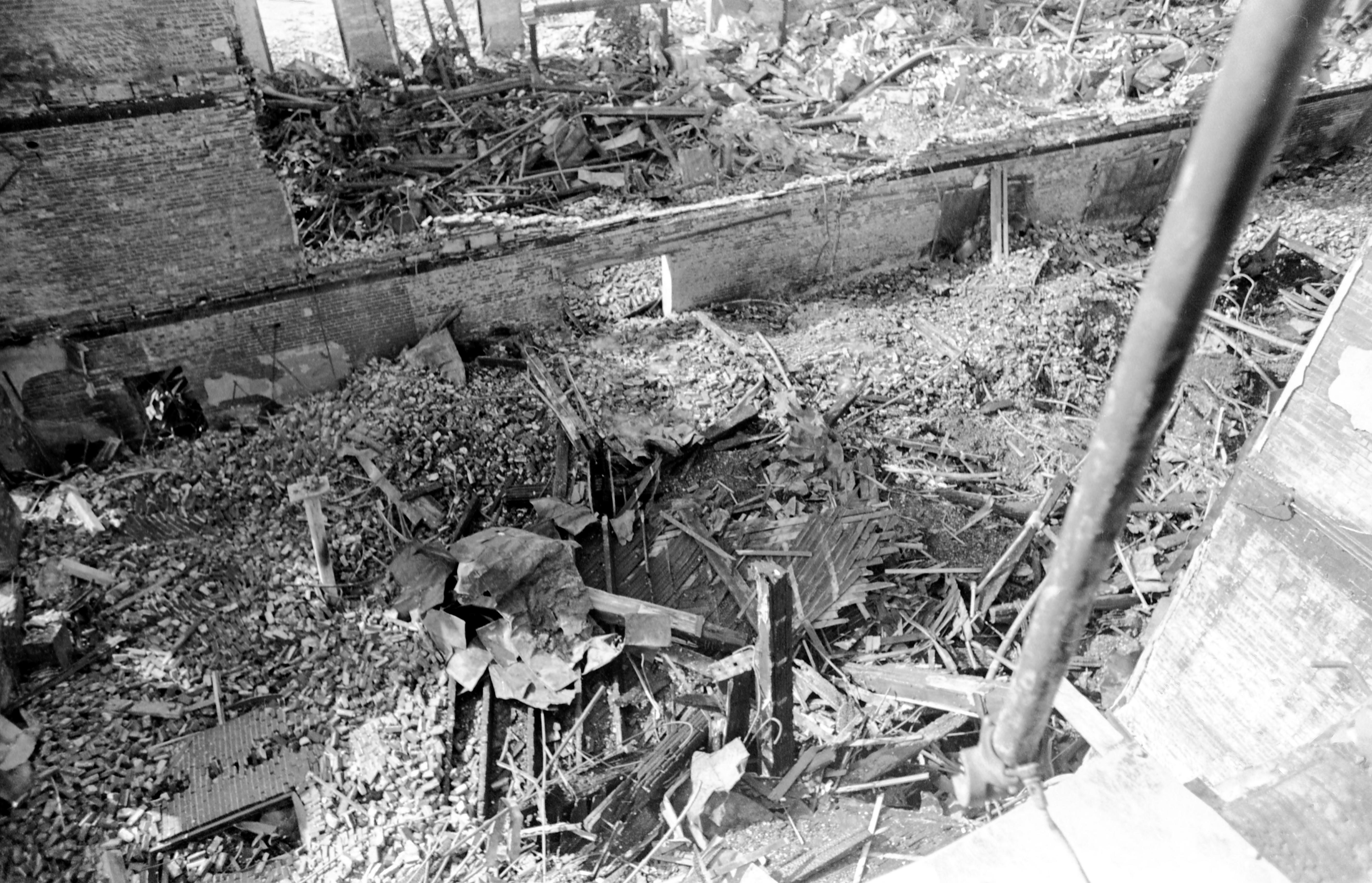 Aftermath of fire at Universal Furniture Co., 1419 Pennsylvania St.