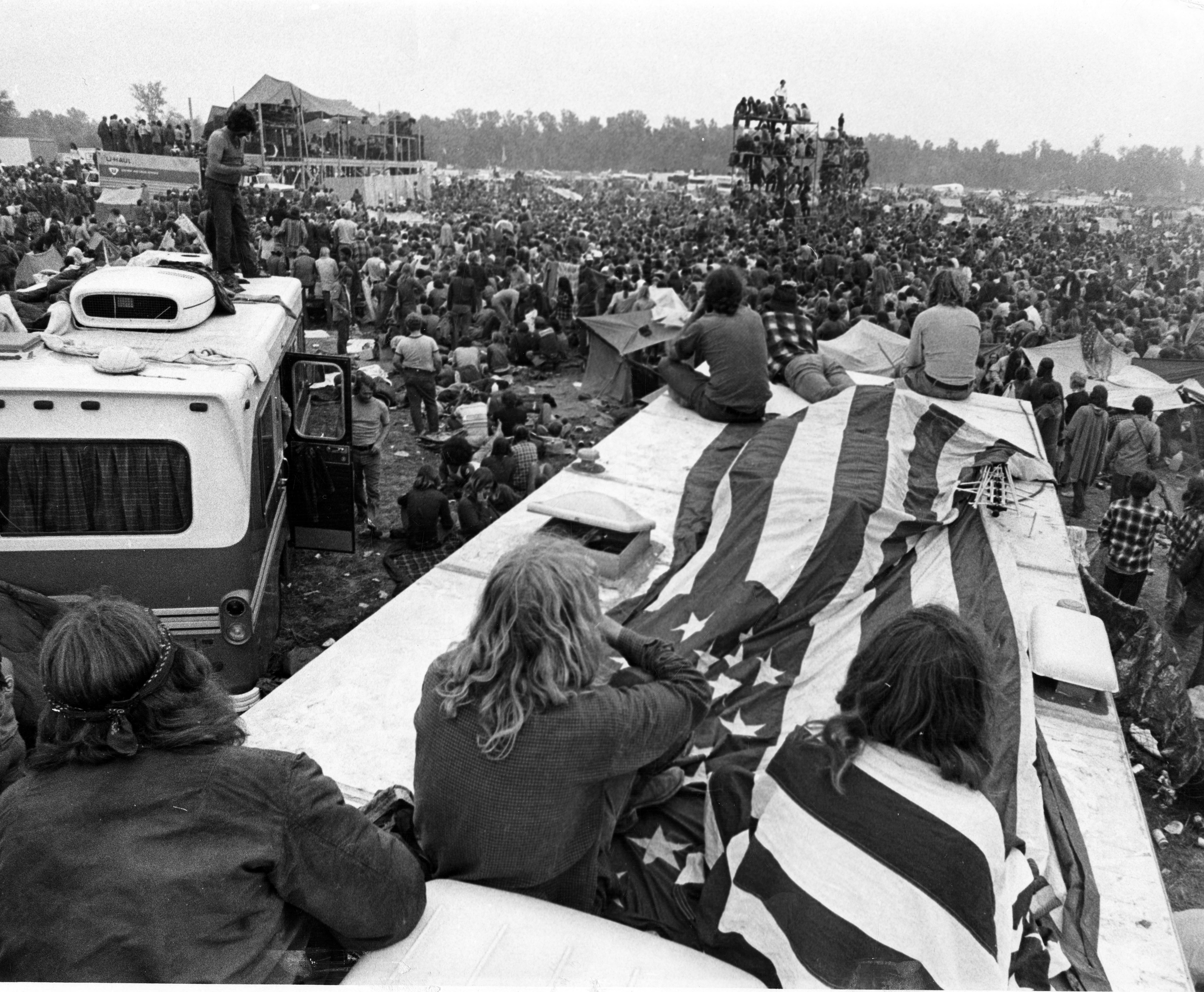 Over the Labor Day weekend in 1972, 2 promoters planned to hold a rock music festival on the grounds of a racetrack in Chandler, Indiana, billed as the Erie Canal Soda Pop Festival. Indiana officials prohibited the use of the initial site, forcing promoters to a last minute move to Bull Island, a piece of land jutting out into the Wabash River. Only accessible from Indiana, Bull Island was east of the river, but through a technicality based on the original course of the river, it was officially in Illinois' jurisdiction. (Bull Island is how this festival is most commonly known.) Expected crowds of 55,000 swelled to 200,000 to 300,000. Law enforcement (only 3 deputy sheriffs were on scene), access (cars were parked for 4 miles along the interstate as drivers and passengers then hiked in), sanitation, food, and water were completely inadequate. Many of the promised performers did not show. Sex, drugs, and rock and roll was the order of the day. A torrential rainstorm furthered the chaos; the event ended withn 2 deaths, overturned and robbed food trucks, the stage being burned, mounds of debris, and massive legal problems for the 2 promoters.