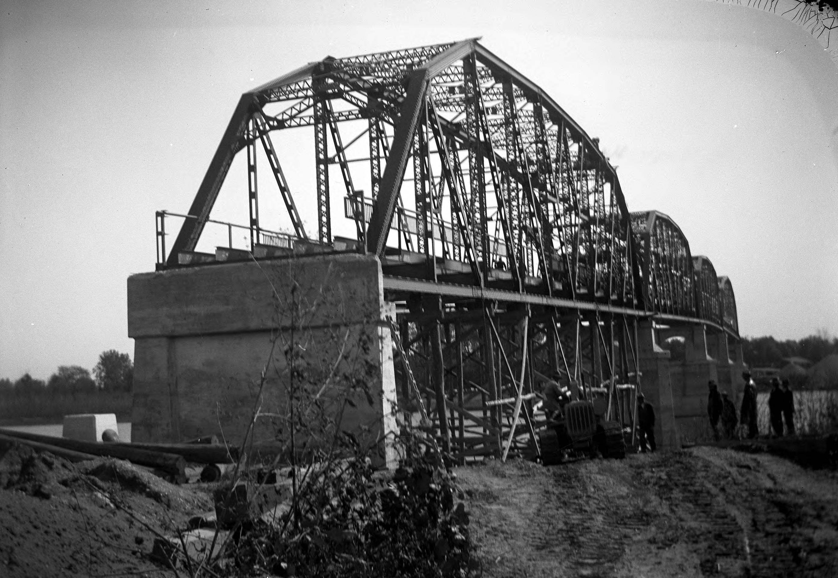 Harmony Way Bridge construction view from the Illinois side of the Wabash River. Until the Harmony Way bridge between Posey County, IN and White County, IL was built in 1930, a ferry would have been the only means of access. This bridge is now closed due to being structurally deficient, and lack of funding to effect repairs.