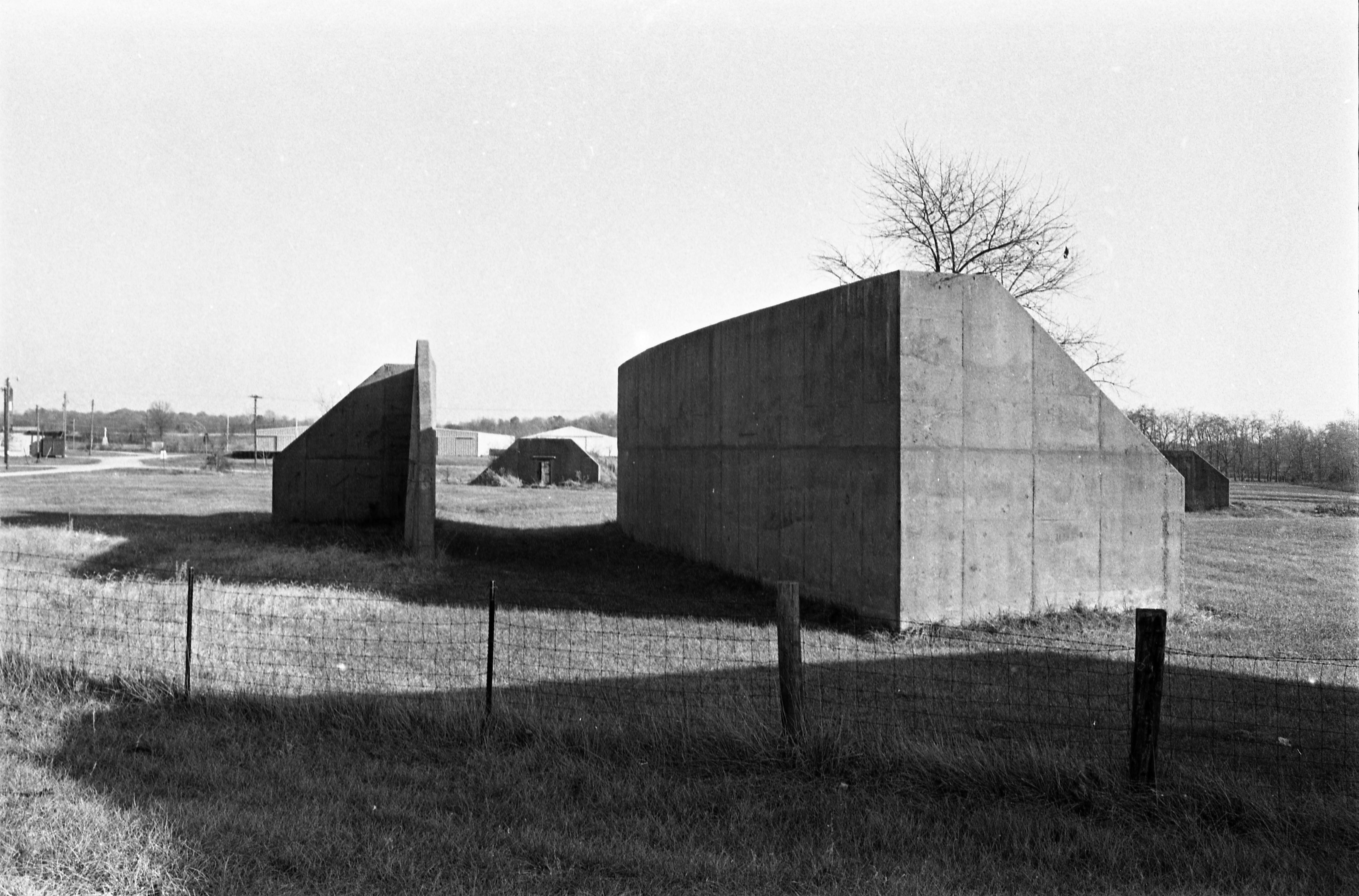 The ammunition bunkers and concrete walls in this series of photographs were built in 1943 as an ammunition dump during WWII. They are on the northern edge of the 4-H Center grounds at 201 E Boonville-New Harmony Rd.