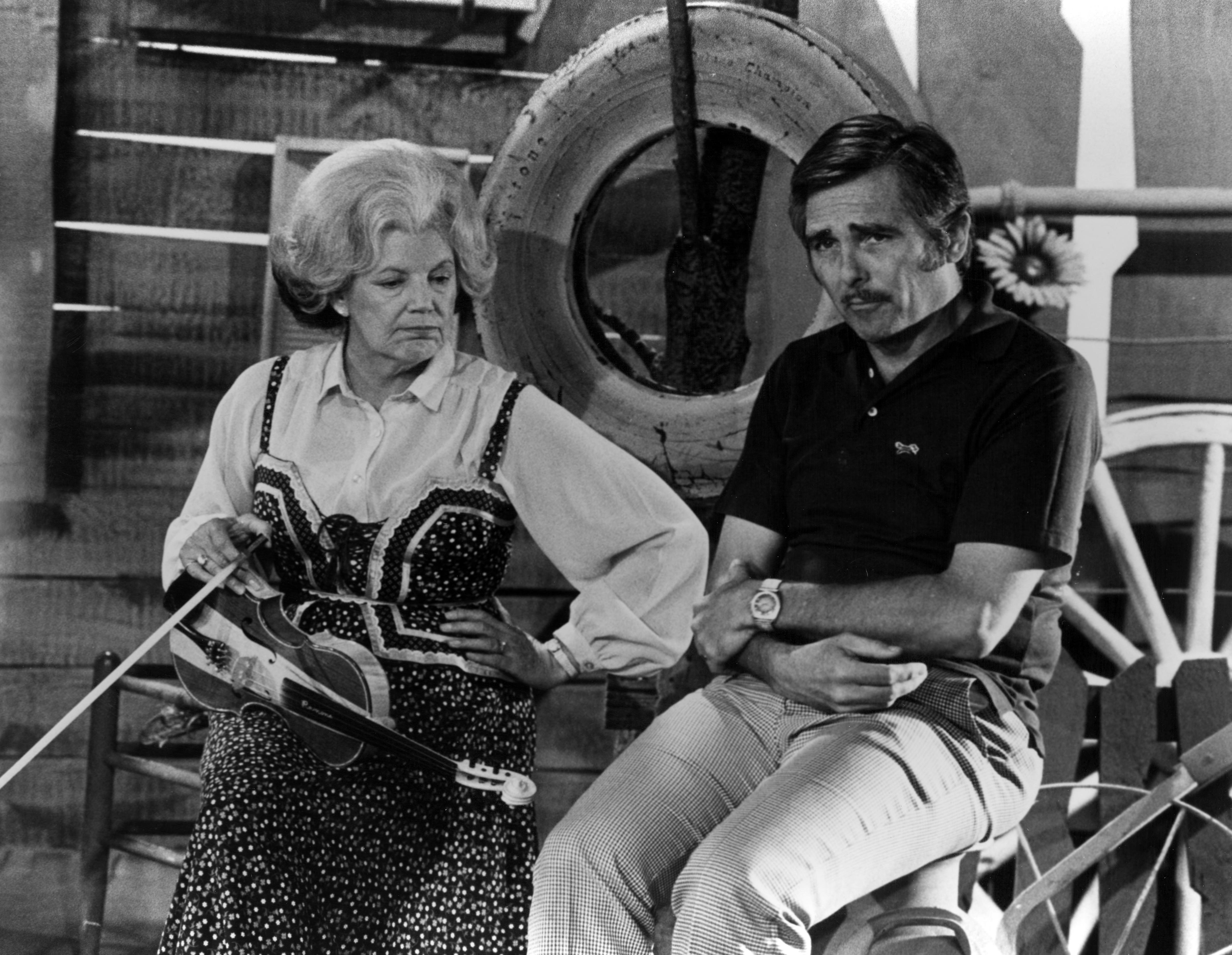 Evansville Courier photographer Sonny Brown was a friend of Hee Haw cast member Grandpa Jones, who was born in Niagara, KY (in Henderson County---just across the river from Evansville, IN) and thus was able to visit the set and take lots of backstage photographs. Here are Ramona Jones and Bob Boatman, director of show.