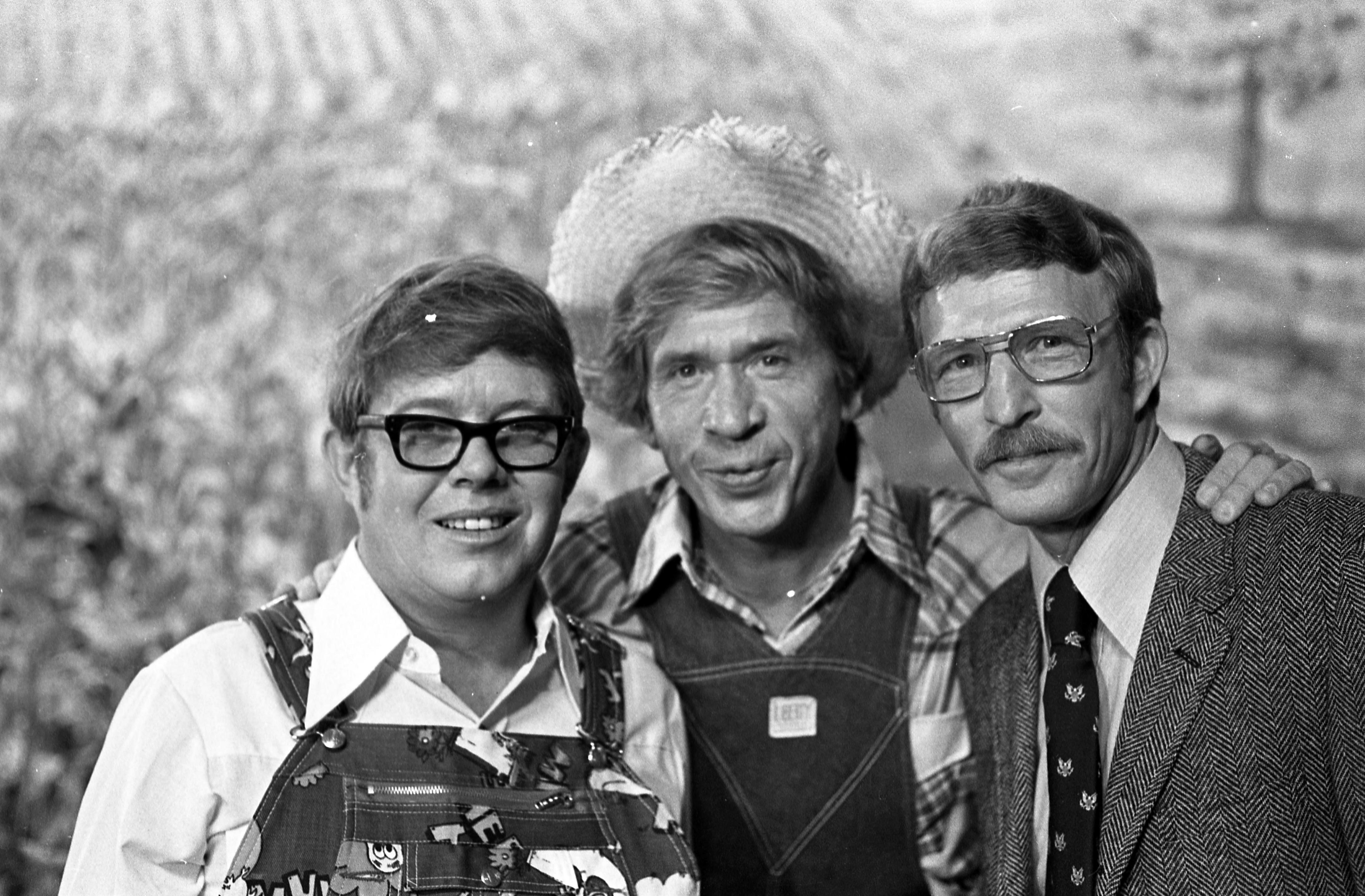 Evansville Courier photographer Sonny Brown was a friend of Hee Haw cast member Grandpa Jones, who was born in Niagara, KY (in Henderson County---just across the river from Evansville, IN) and thus was able to visit the set and take lots of backstage photographs. Here are Billy Carter, surrounded by Hee Haw Honeys, including Marianne Gordon (immediately left of Carter), Cathy Baker (back, 2nd right), and Lulu Roman (front right).
