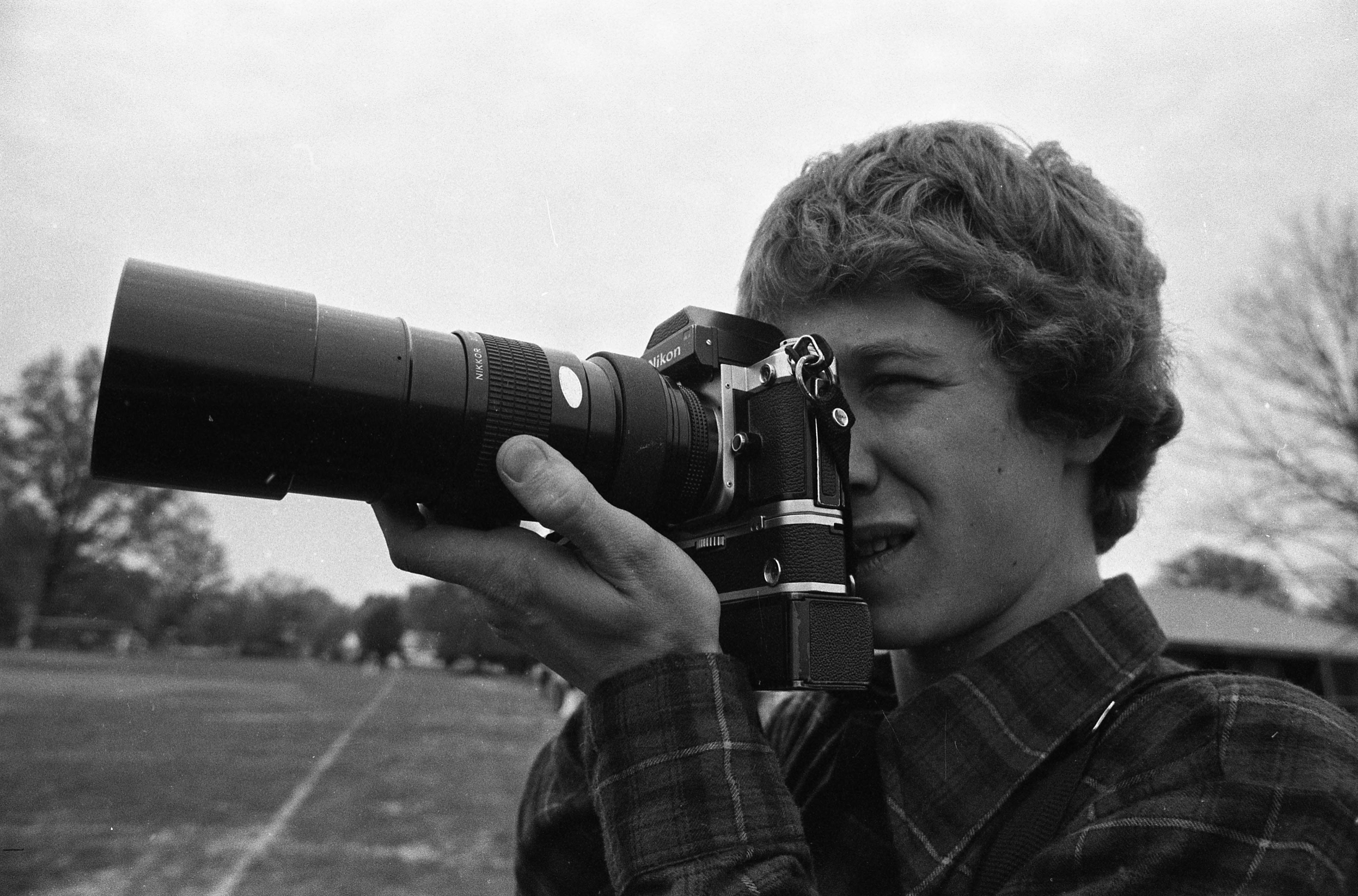 Close-up of a young male photographer with a Nikon camera and extra lens