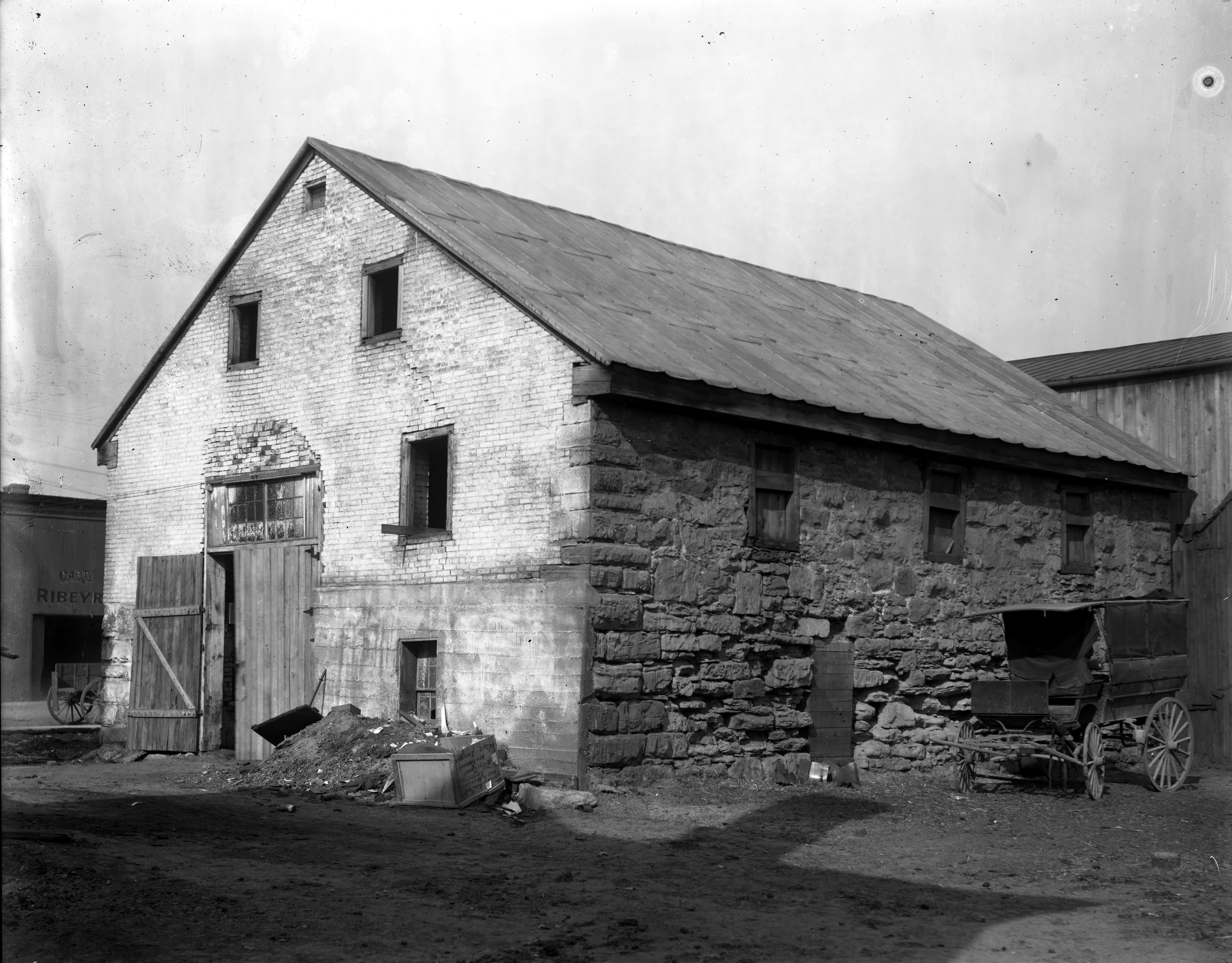 Harmonist warehouse made of stone and brick.