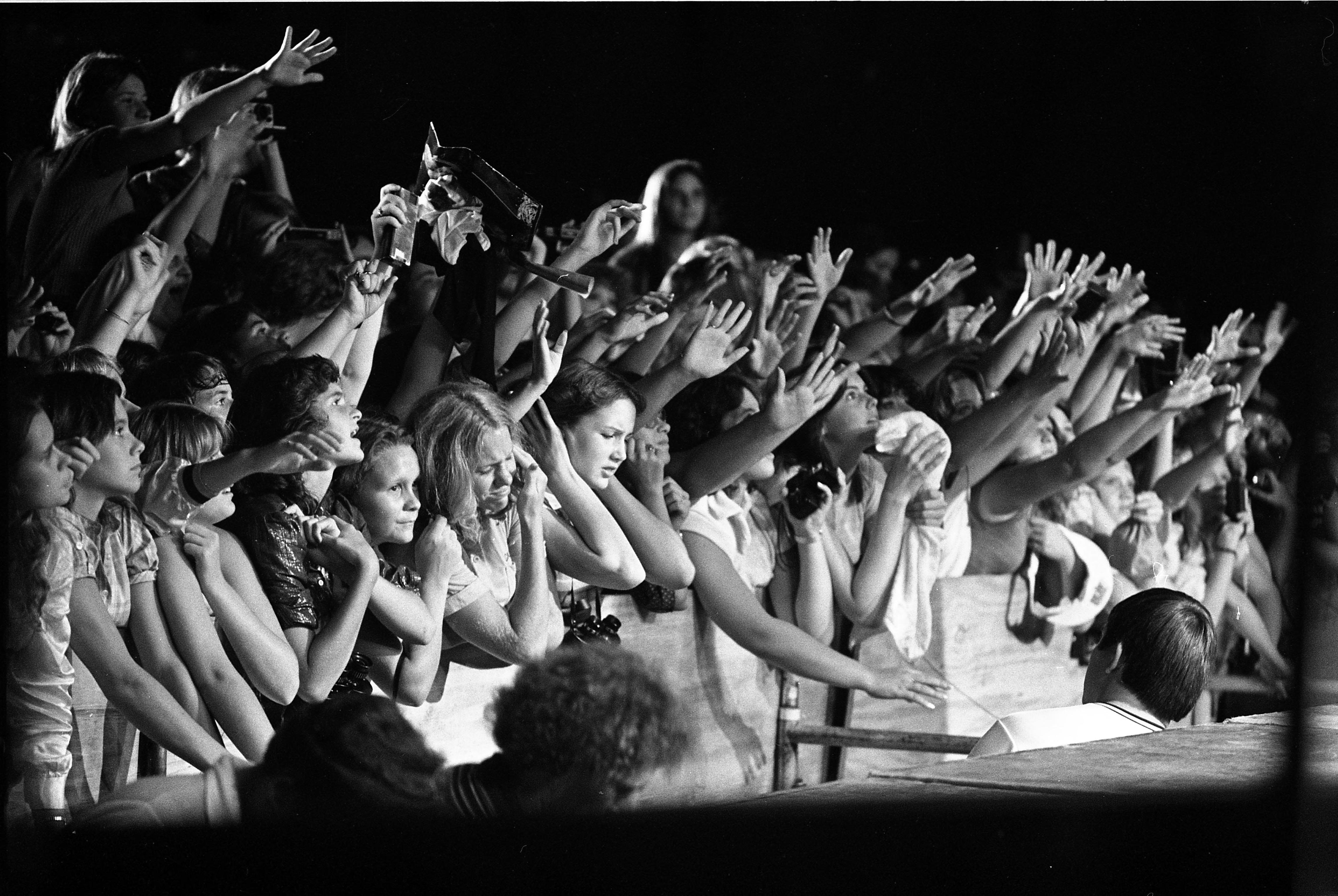Happy crowd at Leif Garrett concert at Roberts Municipal Stadium at 2600 Division St. This facility was razed in 2013.