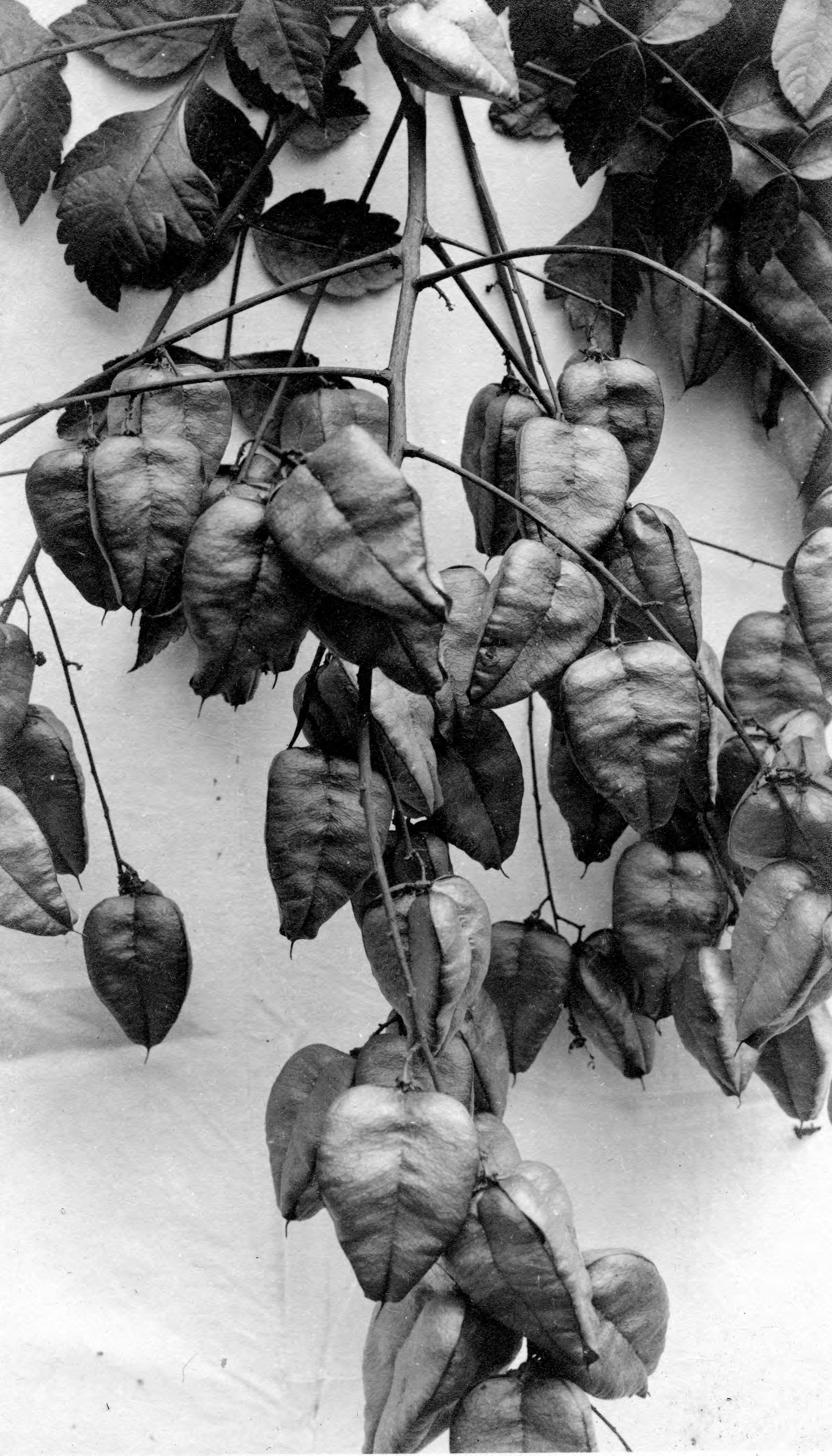 Golden rain tree pods.""William Maclure wanted to raise a kind of tree known as the ""pride of China," also known today as ""golden rain tree." In 1829, after Maclure had moved from New Harmony to Mexico, he acquired seeds but was unable to get them to germinate. In hopes that they would do better in New Harmony, seeds were sent to Thomas Say. He was successful, and today there are many golden rain trees in New Harmony and the surrounding region. Local tradition holds that the New Harmony naturalists introduced the golden raintree to America, but in fact, credit for this introduction belongs to Thomas Jefferson, dating from 1809." (https://faculty.evansville.edu/ck6/bstud/raintree.html) William Maclure, the ""father of American geology," was a collaborator with Robert Owen in his social experiments with community at New Harmony. Thomas Say was an American naturalist who traveled to New Harmony on the ""Boatload of Knowledge"" and continued to work there until his death.