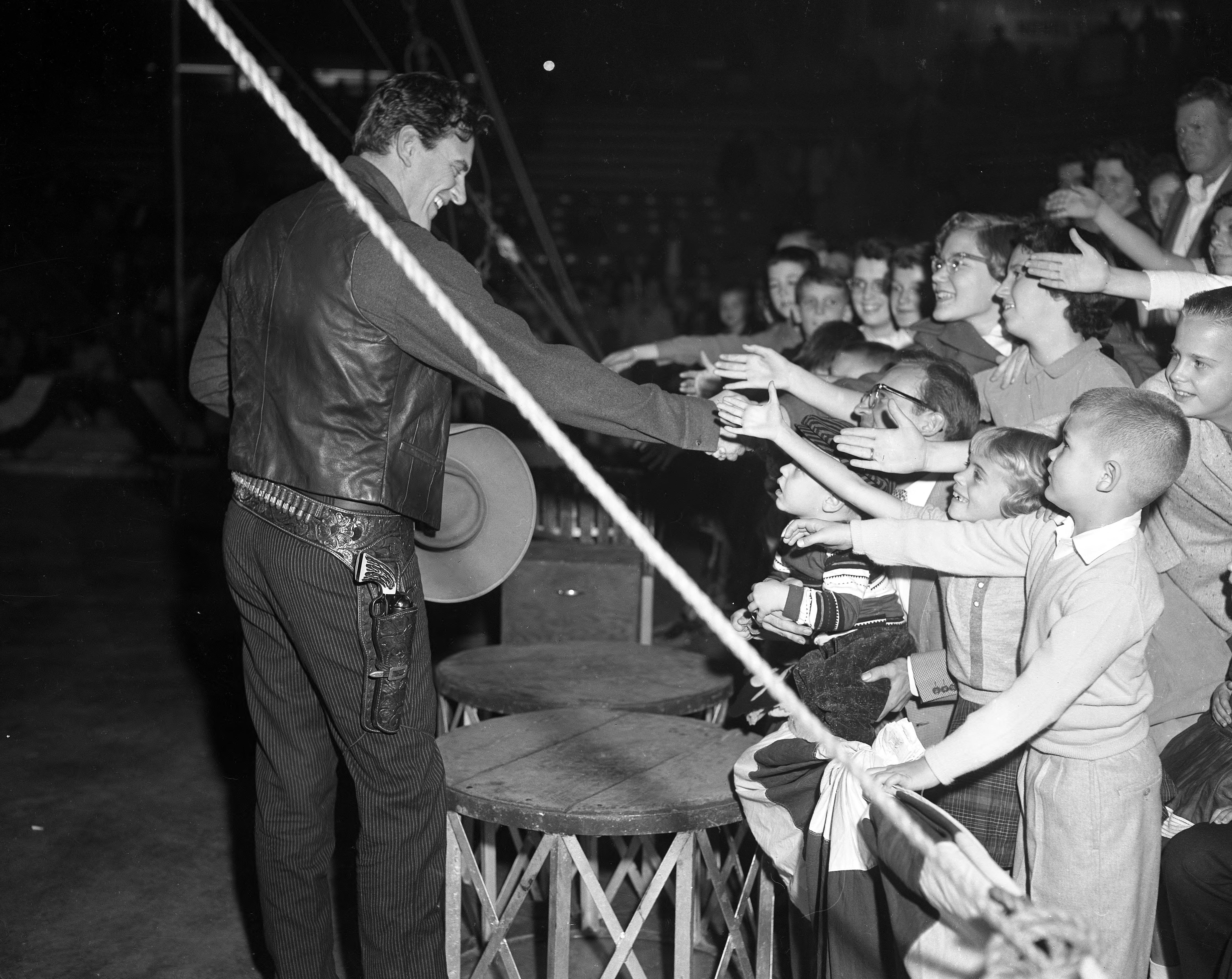 James Arness as Gunsmoke's Marshall Matt Dillon at Roberts Municipal Stadium, 2600 Division St., for the Shrine Circus. This facility was razed in 2013.