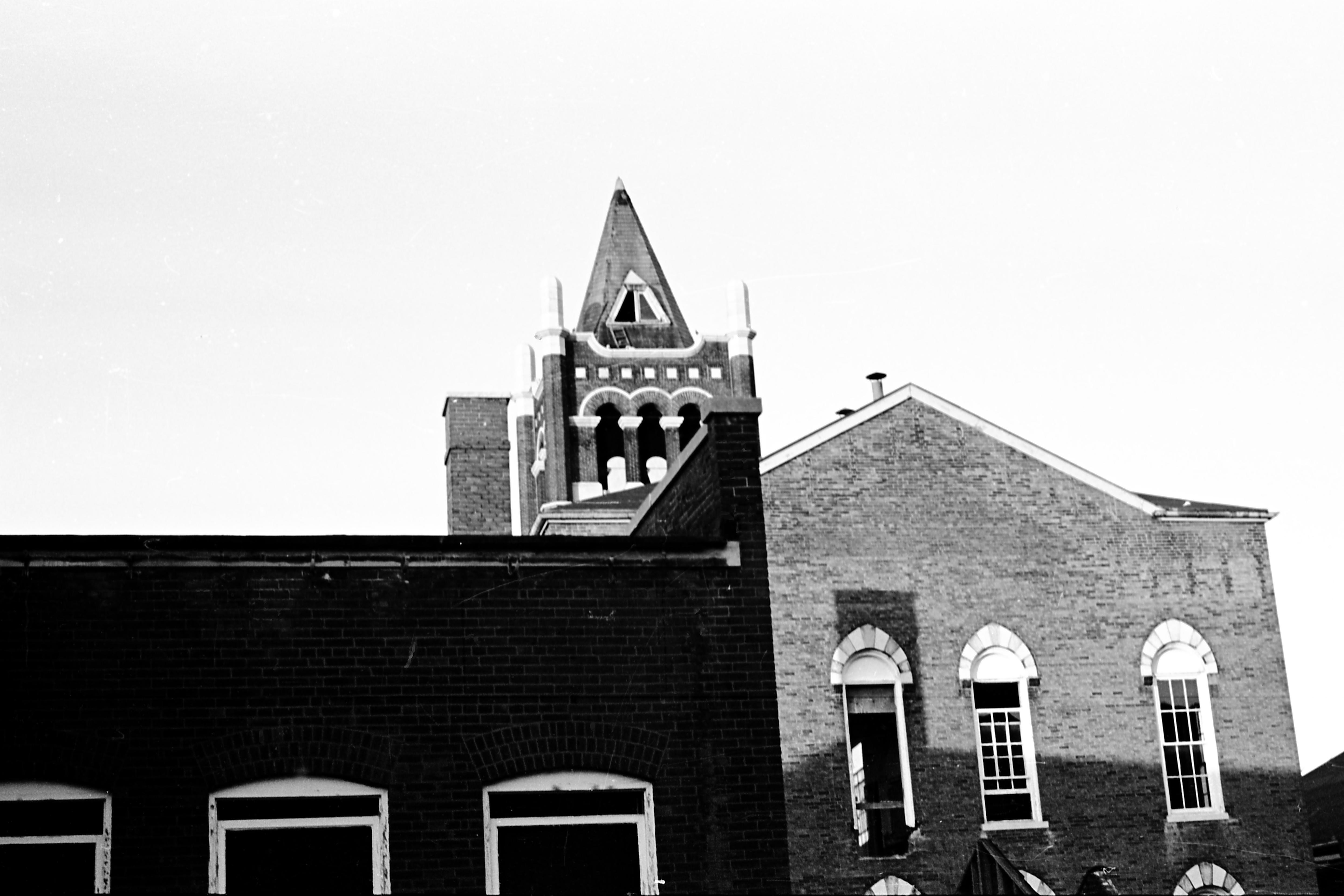 Tower at Central High School, 203 W. 6th St., before demolition. Old Central High School was the oldest free public high school in continuous operation west of the Allegheny Mountains. The school was founded in 1854 and moved into this permanent location in 1868; by the time it closed in 1971 and was razed in 1973, it covered a city block. The school still exists, now on First Ave.