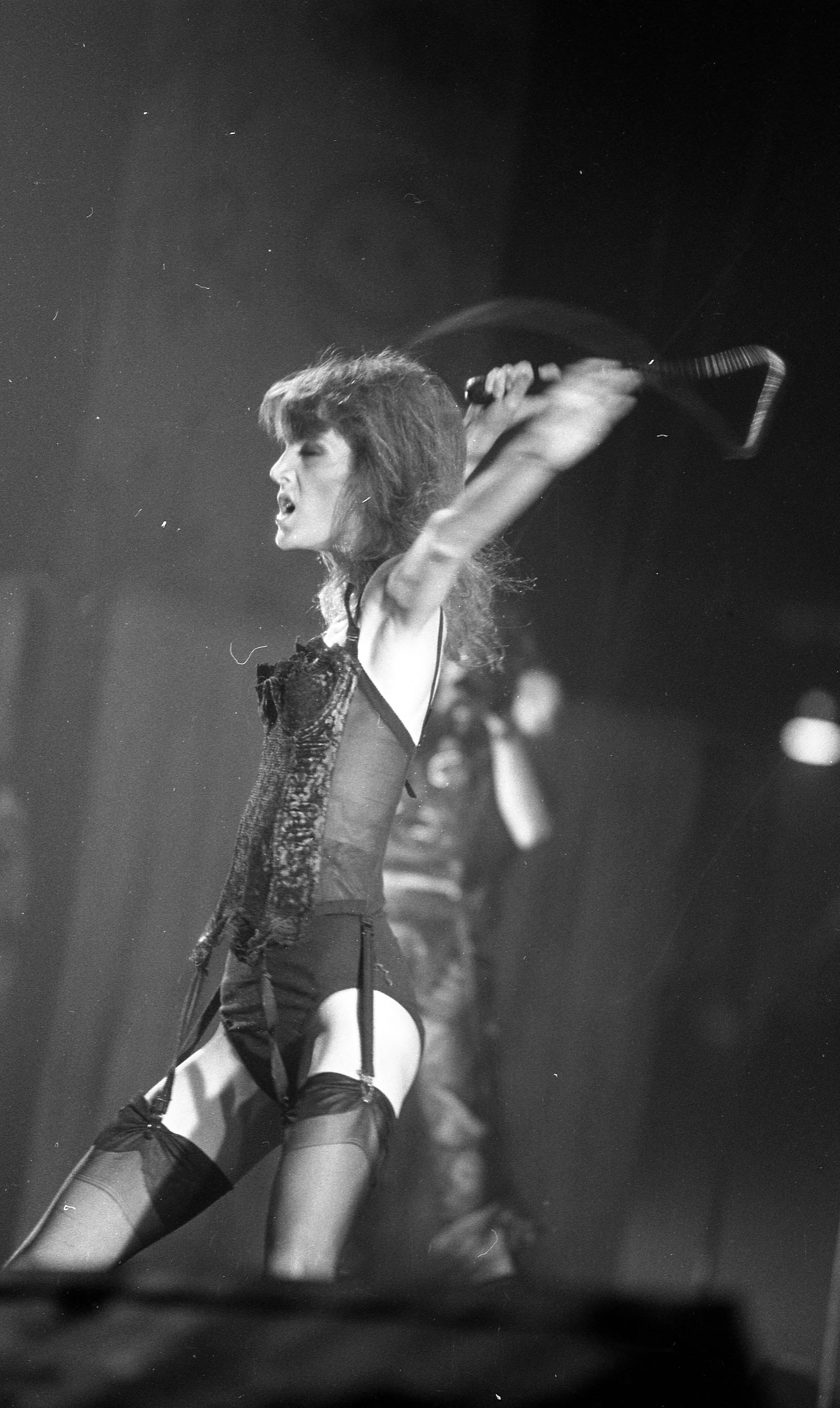 Alice Cooper's wife, Sheryl Goddard Cooper, on stage during his Madhouse Rock concert, meant to depict his recent alcohol detoxification treatment