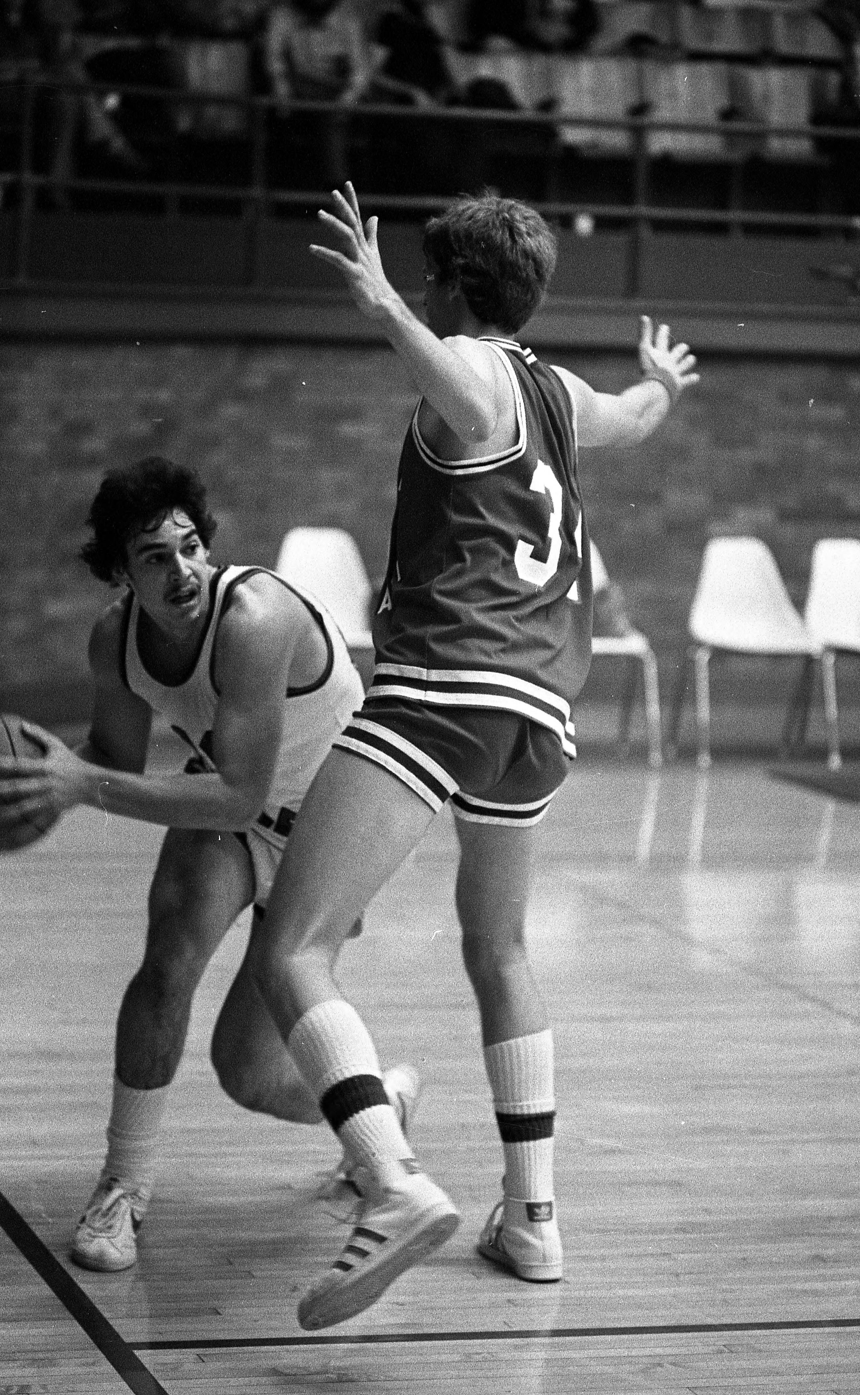 ISUE (Indiana State University Evansville, now USI/University of Southern Indiana) Eagles vs. Bellarmine University Knights. ISUE won, 88-84.
