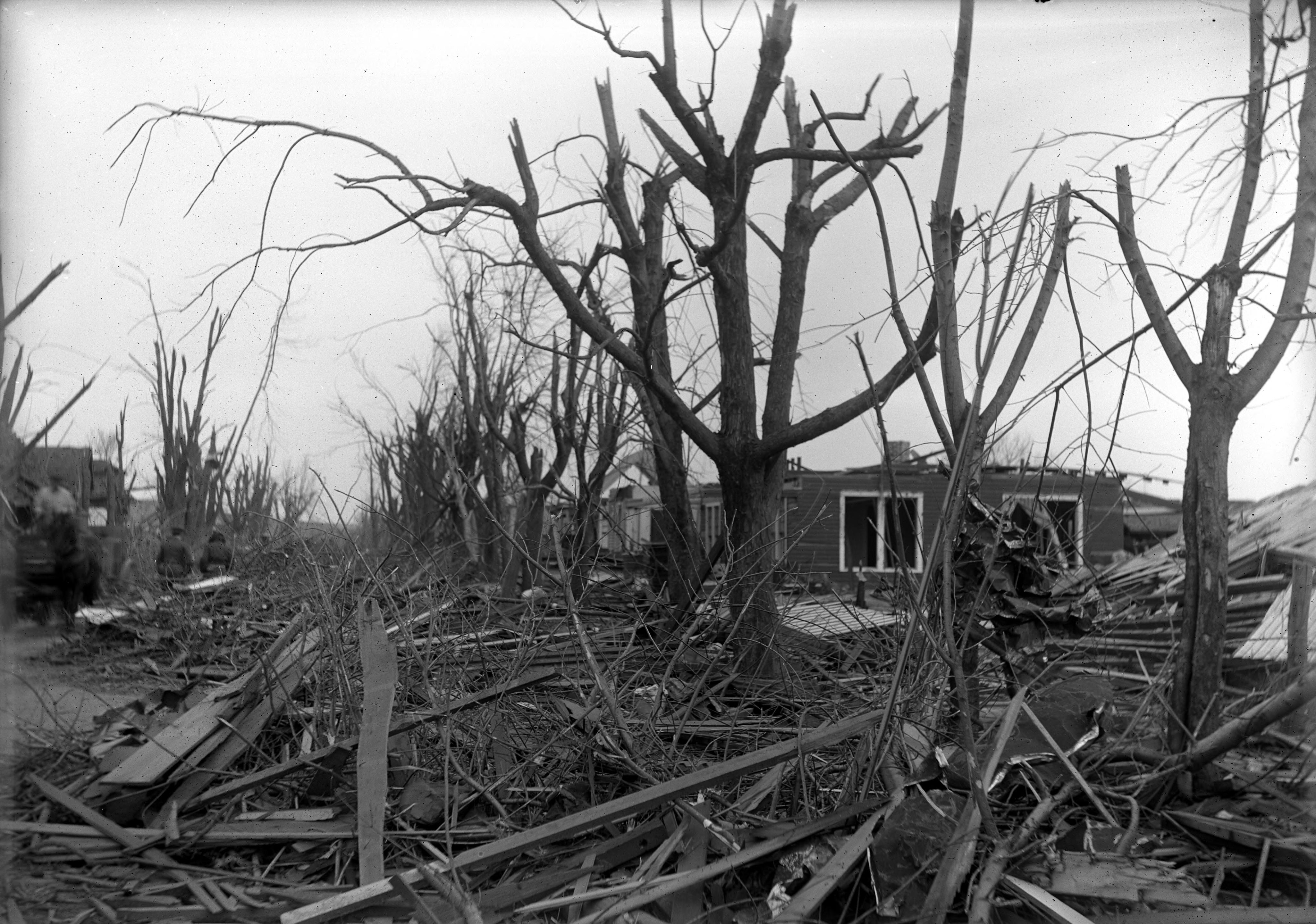 Tornado damage to business section.""On Wednesday, March 18, 1925, the longest and deadliest tornado in U.S. history stuck the Midwest. Called the Great Tri-State Tornado, it started at 1:01 p.m. around Ellington, Missouri. It raged for three and a half hours, barreling through southern Illinois and Indiana before finally breaking up after hitting Princeton, Indiana. The 219 mile devastation path included three states, 19 communities, destroyed more than 15,000 homes, injured 2,027 people and leaving 695 dead."" After three and a half hours and 219 miles of destruction, the Tri-State Tornado, the longest and deadliest in the United States, finally began to dissipate 10 miles northeast of Princeton. It left an estimated $16.5 million ($1.5 billion today) in damages. Even worse though was the number of casualties. In southern Illinois alone: 541 were killed while 1,423 were injuried in 40 minutes when the storm blew through Murphysboro, De Soto, Hurst-Bush and West Frankfort. It killed 69 children in nine schools. The Red Cross and National Guards were called in to help in the recovery and cleanup."" De Soto, Gorham and Griffin, Indiana were also virtually annihilated by the Tri-State Tornado. In Griffin, between 69-75 people were killed and 85 farms were destroyed. (http://www.historybyzim.com/2013/07/tri-state-tornado/).