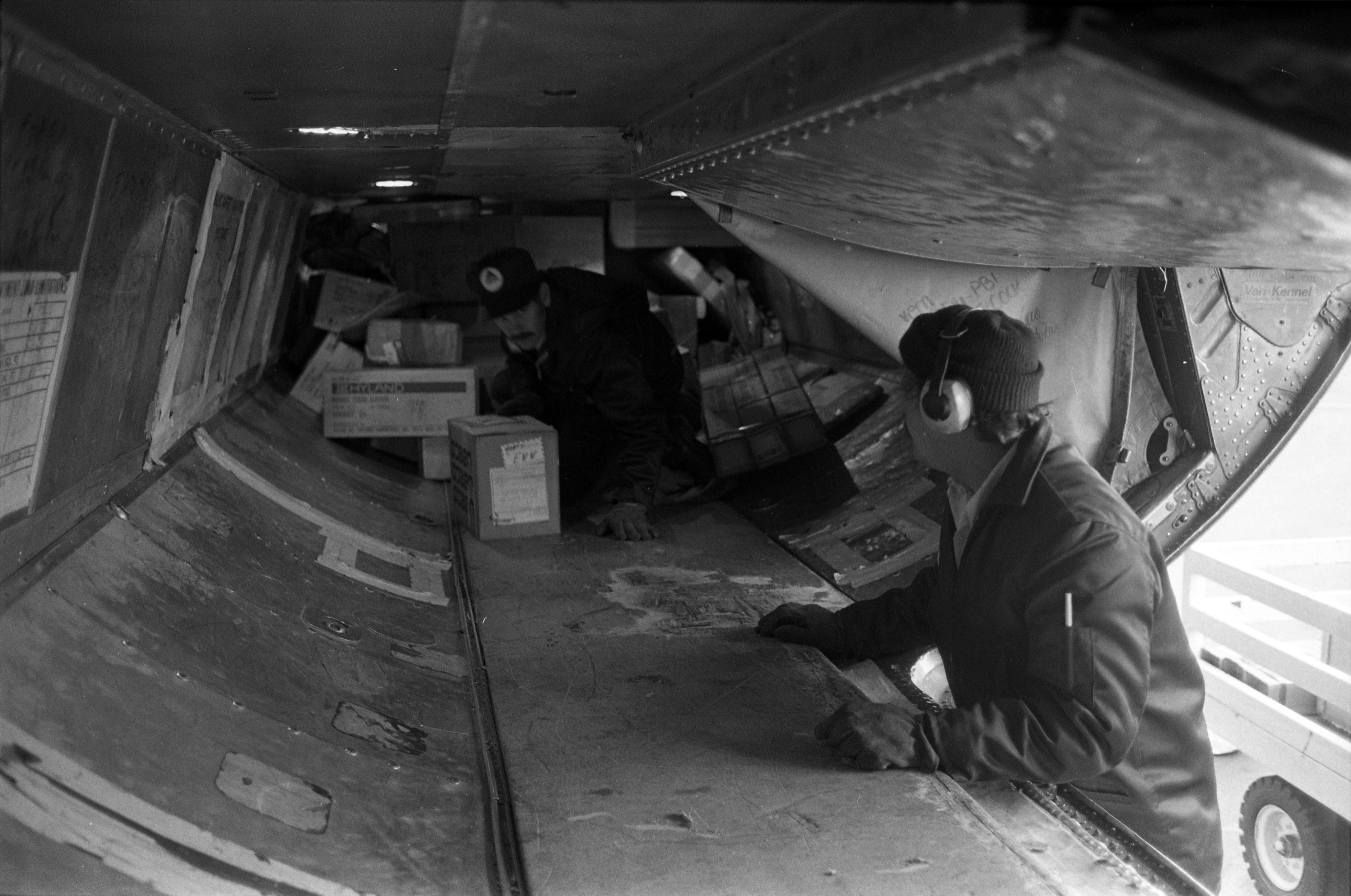 Delta Airlines baggage handlers, loading cargo onto a plane, at Evansville Dress Regional Airport on U.S. Hwy. 41 North