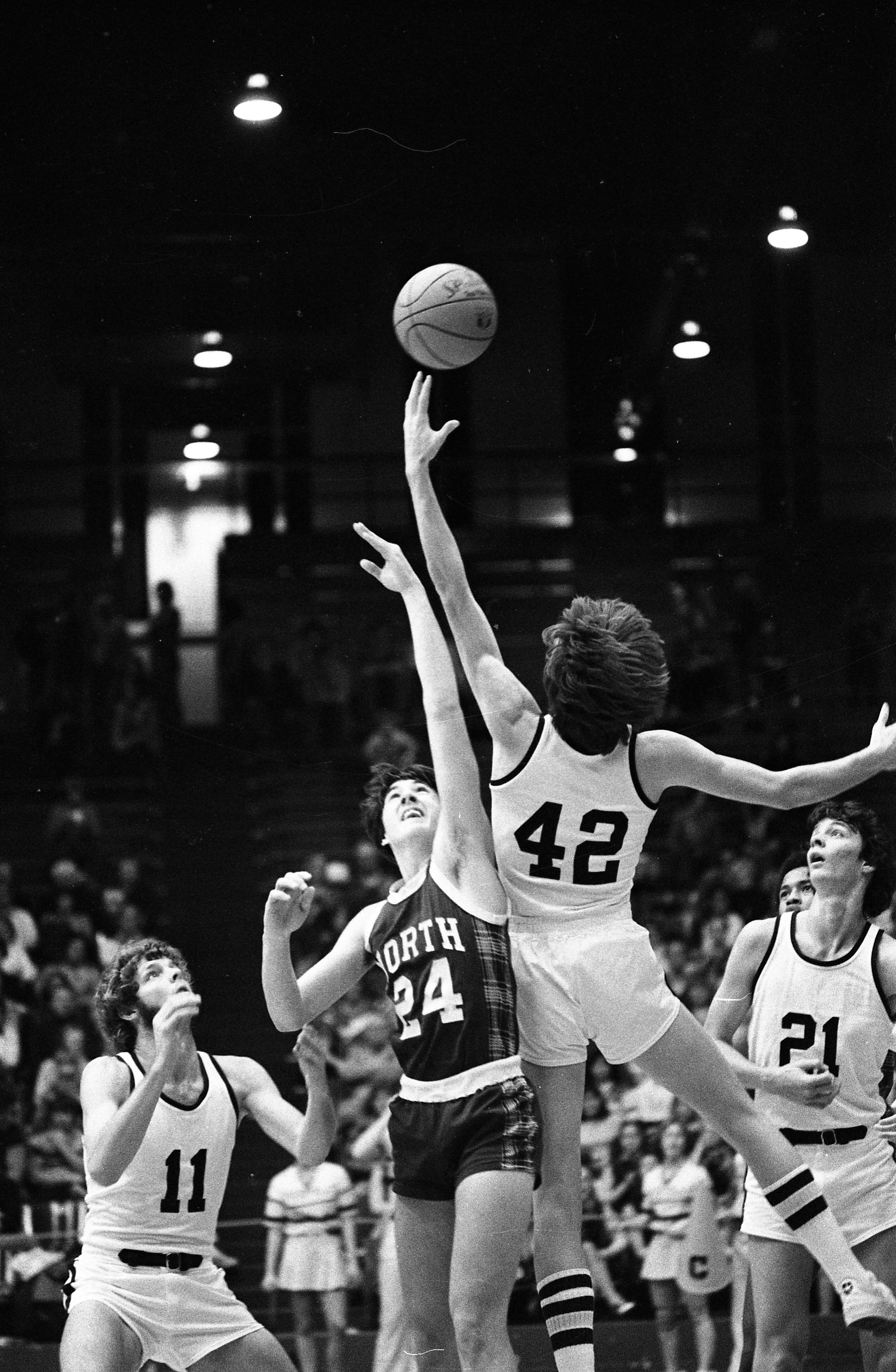 North High School (2319 Stringtown Rd.) basketball game, opponent unknown. North High School no longer occupies this location, although the school still exists. The Academy for Innovative Studies, a school for at-risk students, occupies this location now.