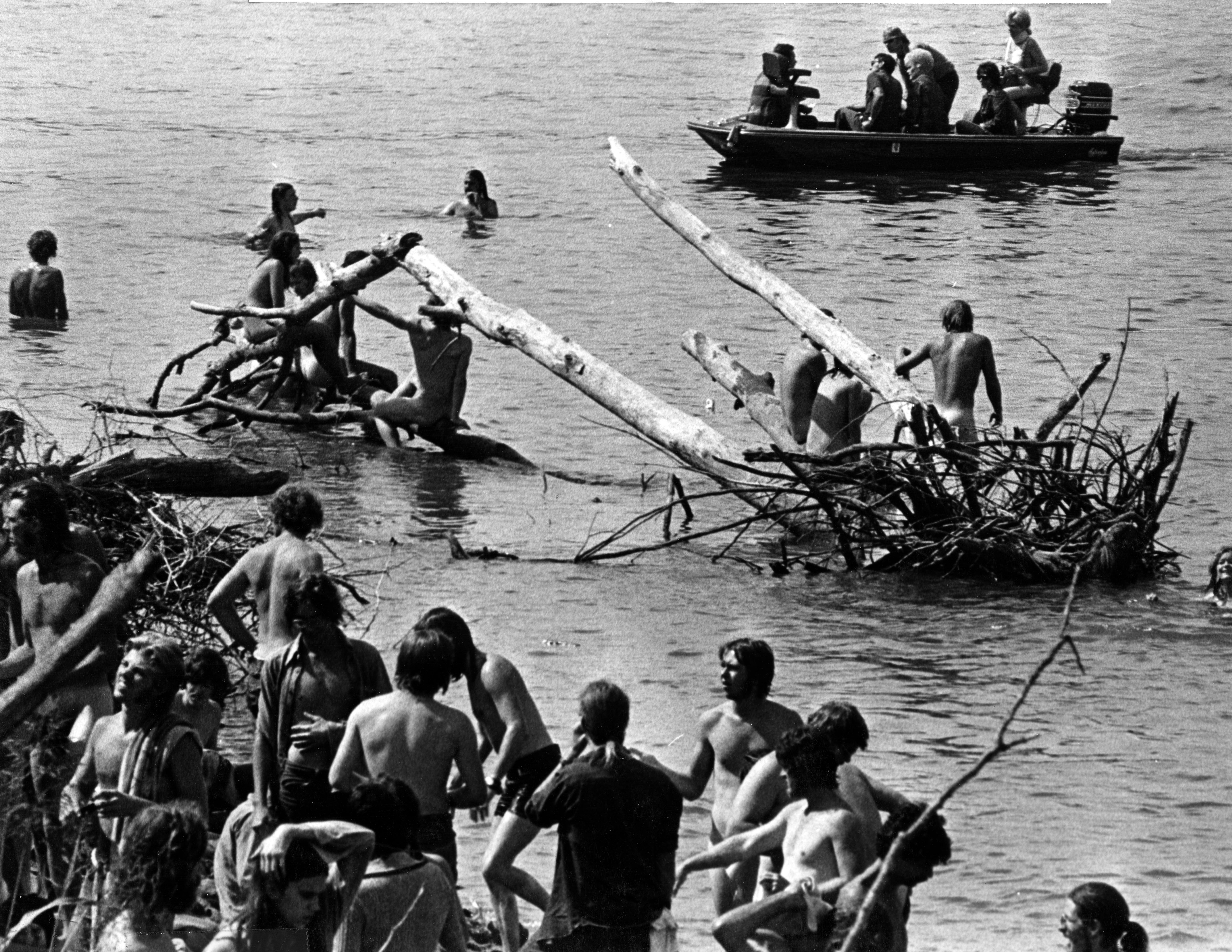 Over the Labor Day weekend in 1972, 2 promoters planned to hold a rock music festival on the grounds of a racetrack in Chandler, Indiana, billed as the Erie Canal Soda Pop Festival. Indiana officials prohibited the use of the initial site, forcing promoters to a last minute move to Bull Island, a piece of land jutting out into the Wabash River. Only accessible from Indiana, Bull Island was east of the river, but through a technicality based on the original course of the river, it was officially in Illinois' jurisdiction. (Bull Island is how this festival is most commonly known.) Expected crowds of 55,000 swelled to 200,000 to 300,000. Law enforcement (only 3 deputy sheriffs were on scene), access (cars were parked for 4 miles along the interstate as drivers and passengers then hiked in), sanitation, food, and water were completely inadequate. Many of the promised performers did not show. Sex, drugs, and rock and roll was the order of the day. A torrential rainstorm furthered the chaos; the event ended withn 2 deaths, overturned and robbed food trucks, the stage being burned, mounds of debris, and massive legal problems for the 2 promoters.