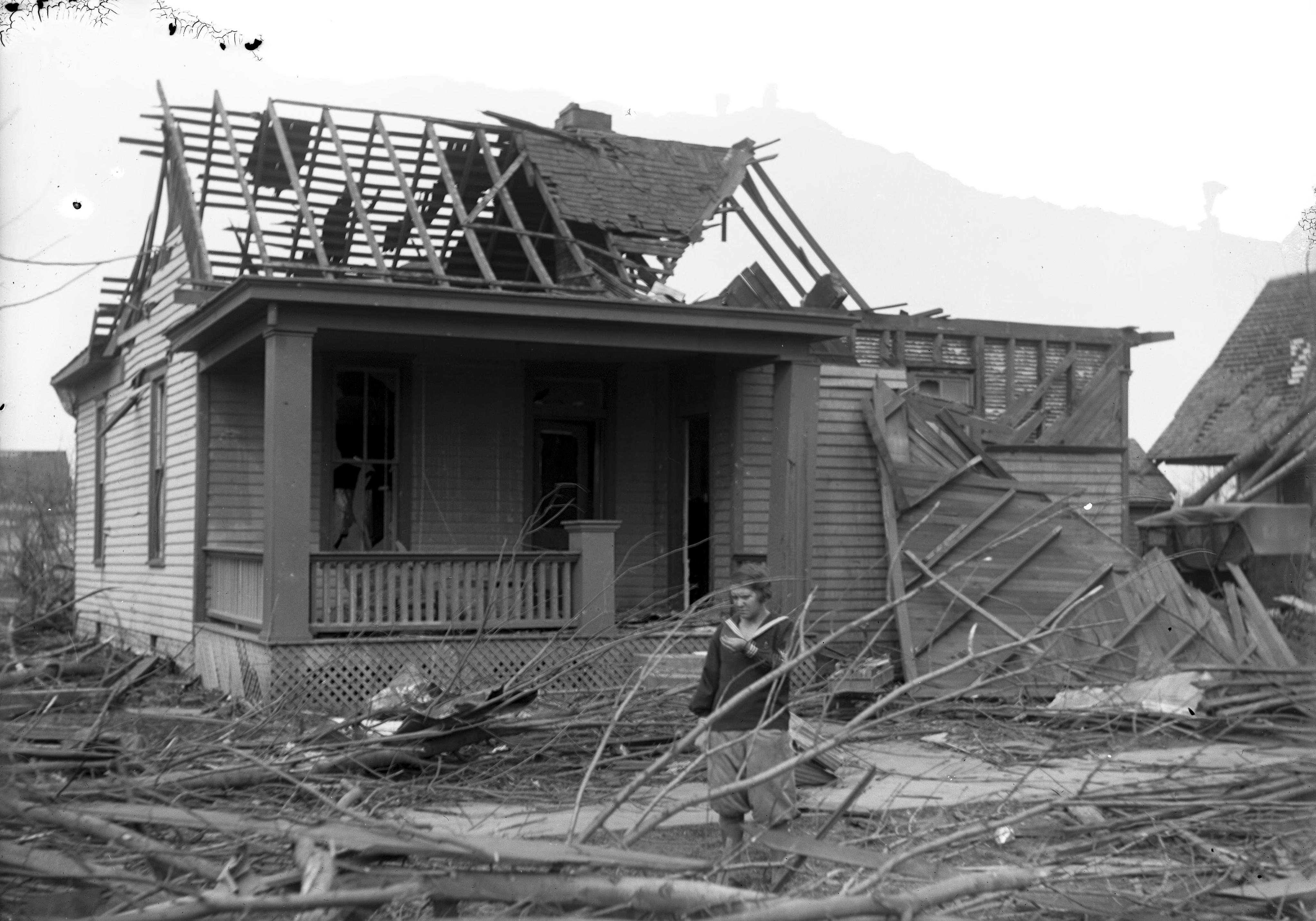 Tornado damage to Don Price home, Mrs. Price in front.""On Wednesday, March 18, 1925, the longest and deadliest tornado in U.S. history stuck the Midwest. Called the Great Tri-State Tornado, it started at 1:01 p.m. around Ellington, Missouri. It raged for three and a half hours, barreling through southern Illinois and Indiana before finally breaking up after hitting Princeton, Indiana. The 219 mile devastation path included three states, 19 communities, destroyed more than 15,000 homes, injured 2,027 people and leaving 695 dead."" After three and a half hours and 219 miles of destruction, the Tri-State Tornado, the longest and deadliest in the United States, finally began to dissipate 10 miles northeast of Princeton. It left an estimated $16.5 million ($1.5 billion today) in damages. Even worse though was the number of casualties. In southern Illinois alone: 541 were killed while 1,423 were injuried in 40 minutes when the storm blew through Murphysboro, De Soto, Hurst-Bush and West Frankfort. It killed 69 children in nine schools. The Red Cross and National Guards were called in to help in the recovery and cleanup."" De Soto, Gorham and Griffin, Indiana were also virtually annihilated by the Tri-State Tornado. In Griffin, between 69-75 people were killed and 85 farms were destroyed. (http://www.historybyzim.com/2013/07/tri-state-tornado/).