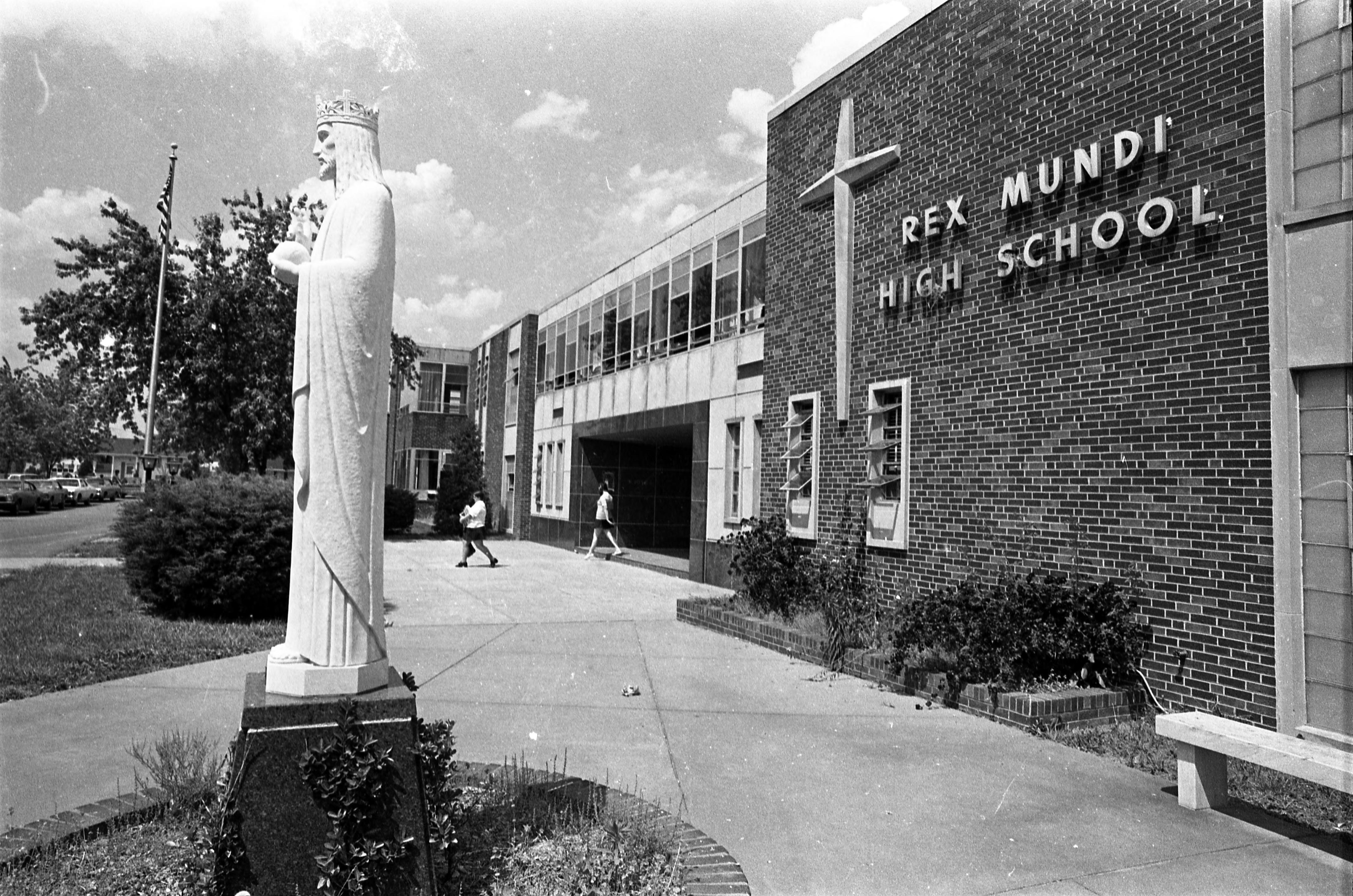 Rex Mundi High School at 3501 N. First Ave. opened in 1958 as Evansville's third Catholic high school. Dwindling attendance meant its last class graduated in 1972 and the school closed. The building was sold to Indiana Vocational Technical College (Ivy Tech), which still exists in this location today. A massive renovation in 2004 completely altered the appearance of this building.